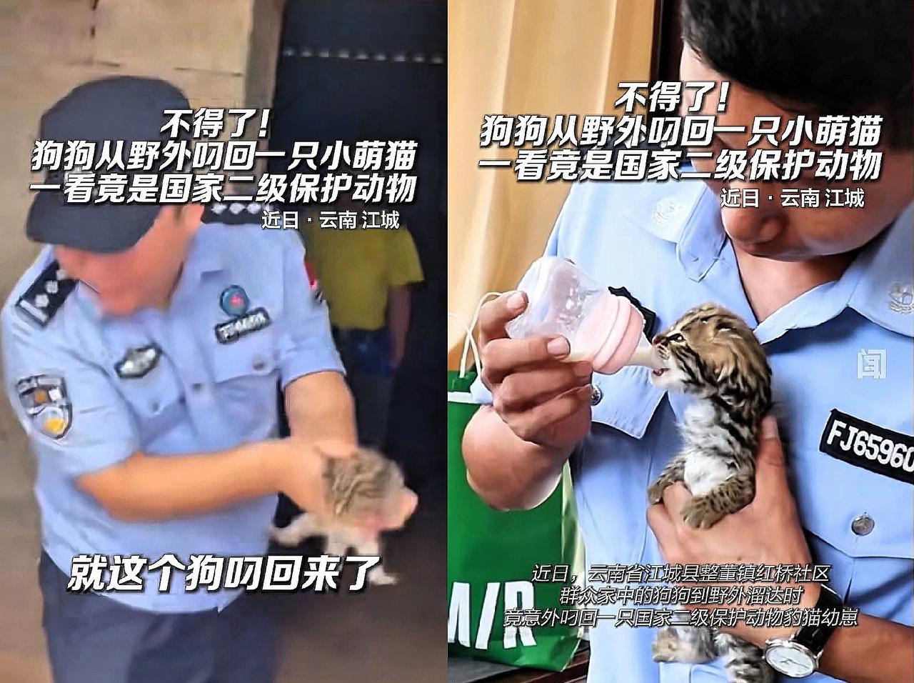 不得了了! 云南一名主人正在家中干活,突然家中的狗狗从外面跑了回来,并且狗狗嘴里还叼着一个东西,狗狗到家后把嘴里的东西吐下来,主人一看,不得了,这哪是家猫,是国家二级保护动物豹猫! 谁能怪主人一开始没认出来?那小家伙缩成一团,跟普通奶猫简直一个模子刻出来的。可狗狗哪懂这些,它大概就是觉得这小毛球软乎乎的,想叼回来作伴吧?这份没心没肺的热情,差点让主人闯了祸! 这事看着好笑,实则藏着个理儿:自然界的小家伙们藏着太多“障眼法”,看着眼熟不代表能随便带回家。保护动物从来不是遥远的口号,说不定就藏在自家宠物带回的“惊喜”里!