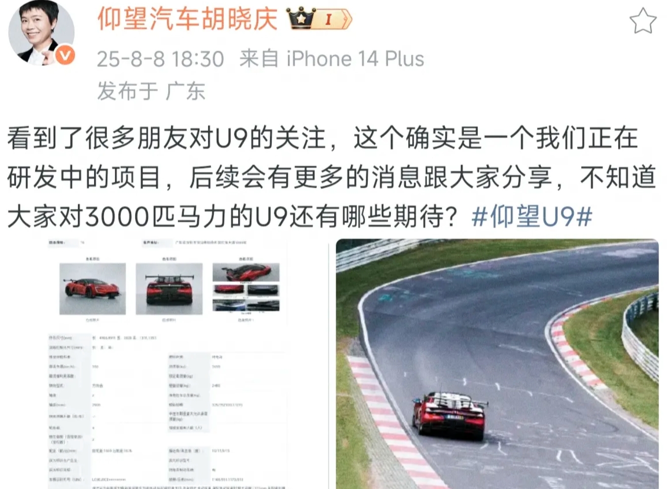 U9本来就2秒出头了,新u9从1300匹马力,一下干到了3000匹,1开头又要刷新记录了,这回纽北,包括各种赛道,一个个就仰望吧。其实冷静下来思考,比亚迪一次次的王炸,就是技术有自信,有底气,更有实力。