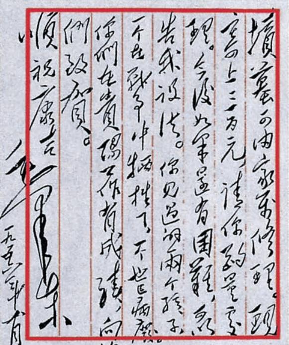 1956年8月11日毛主席致信曹云芳:现寄上三百元。今后如果还有困难,可以告诉我