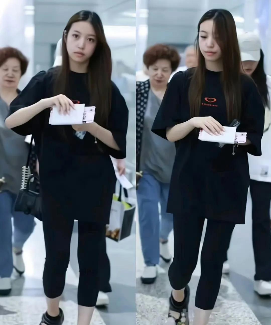 赵薇女儿15岁的小四月惊艳亮相机场 | 星二代中的长腿女神 小四月一袭全黑造型现身机场,简约随性却不失时尚气场,利落剪裁勾勒出修长身形,尽显超模潜质。黑色棒球帽搭配宽松卫衣与紧身长裤,轻松演绎街头潮流风范,举手投足间散发出青春与自信的独特魅力,堪称星二代中备受瞩目的时尚新星。