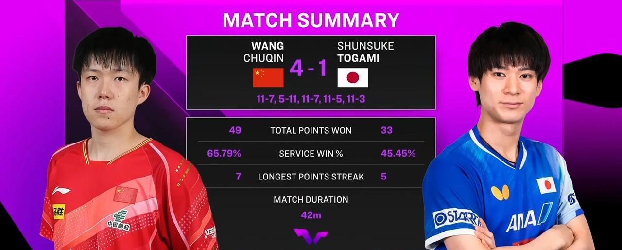 王艺迪力克陈熠取得WTT100场胜利,石洵瑶横扫蒯曼,王楚钦力克户上隼辅晋级四强