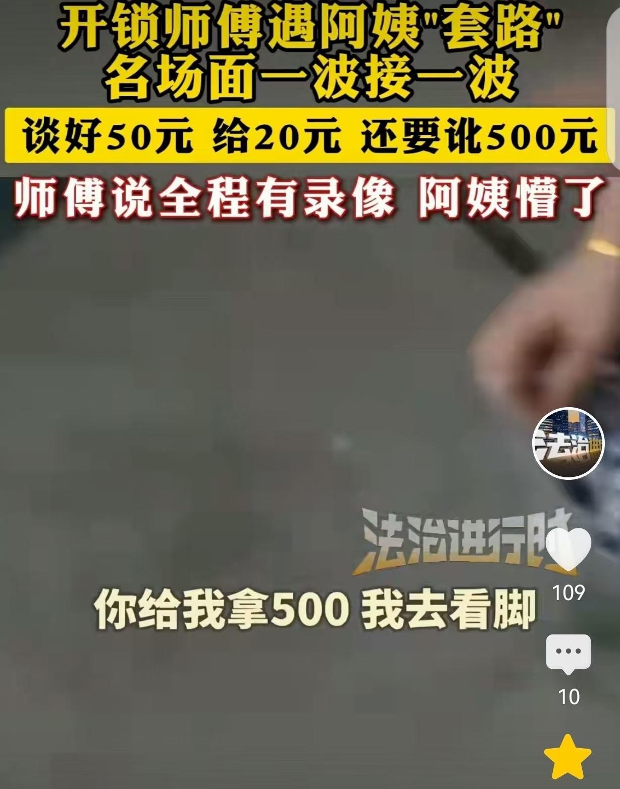四川,一大妈花50元开锁,她一看开锁师傅一鼓捣就把门打开了,也就几秒钟,觉得他这50元挣得太容易了,只给20元,开锁师傅怒了,直接把大妈拽出来,又把门锁上了,大妈一看,一屁股坐在地上,要求师傅给她倒找500,否则她就报警,开锁师傅只用了一句话,大妈立马乖乖从地上爬起来,支付了50元。 8月10日,据法治进行时报道,一大妈出门买菜,岁数大了就丢三落四,买完菜到了家门口,摸遍全身的口袋,竟发现忘带钥匙了。 可把大妈急坏了,她没有备用钥匙,只能花钱请开锁师傅了。 大妈找到开锁师傅电话,对方在电话里报了价,说50元开锁,大妈软磨硬泡讨价还价,都没搞下来。 无奈,大妈硬着头皮答应了,可让她难以置信的是,开锁师傅三下五除二,就把门打开了,前后也就几秒钟,这让大妈心里顿时失衡了。 大妈觉得,开锁师傅这50元挣得不费吹灰之力,简直太容易了,他要给自己鼓捣个十分二十分的才打开,她才觉得这50元掏的值。 大妈反悔了,只同意给开锁师傅20元,反正她已经站在家门里了,反正门已经都打开了,如果师傅不同意拉倒,她还就一分钱都不给了。 师傅一看大妈为老不尊,言而无信,后悔自己应该让她先给钱后开门,自己用的时间少咋了?那是他技术好,这不是大妈赖账的理由。 在开锁师傅看来,这50元是市场价,大妈只看到他秒开锁却没把他来去的时间成本算上,他这50元挣得问心无愧。 开锁师傅也没惯着大妈,直接把他从门里拽了出来,师傅是一个大男人,一身的力气,大妈哪里是他的对手。 可大妈也不是好惹的,她被拽出门后,顺势坐在了台阶上,说磕坏她脚丫子了,她不但不给师傅50元,师傅还要倒找给她500元,她要去看脚,否则就报警。 面对大妈的胡搅蛮缠,师傅并不着急,他告诉大妈,他可全城录像呢,她休想栽赃陷害。 大妈一听顿时傻眼了,瞠目结舌的说:啊?你录像了?她知道自己失算了,麻溜地起来了,乖乖掏出钱,开锁师傅才又把门给她打开。 有人说,犯罪成本低,是她嚣张的底气!这就完事了?这就是所谓的法制社会?讹人不需要成本吗? 大妈在开锁前已确认50元费用,却在师傅秒开锁后以“技术太容易”为由压价至20元,甚至在被拽出门后谎称“脚受伤”要求倒赔500元,其行为本质是利用年龄优势进行道德绑架和讹诈。 这种“耍赖式”消费不仅违背市场诚信原则,更涉嫌敲诈勒索,若证据确凿,可能面临行政处罚。 开锁师傅全程录像的应对方式值得肯定,既保护了自身权益,也以法律手段震慑了讹诈者。 反观大妈,其“讹人成本低”的嚣张底气,恰恰折射出社会对失信行为的惩戒力度不足。 若此类行为得不到有效约束,不仅会纵容更多人效仿,更会破坏市场交易秩序,损害社会公平。 任何试图通过耍赖、讹诈获利的行为,终将自食其果。 《民法典》第577条规定:当事人一方不履行合同义务或者履行合同义务不符合约定的,应当承担继续履行、采取补救措施或者赔偿损失等违约责任。 大妈与开锁师傅通过电话达成口头协议,约定50元开锁服务费,双方成立服务合同关系。 根据《民法典》第469条,合同形式包括书面、口头或其他形式,法律效力等同。 大妈在门锁已开后单方面毁约,仅支付20元,违反合同约定。即使开锁过程仅耗时几秒,合同标的是“结果”而非“耗时长短”,技术熟练不构成减费理由。 开锁师傅有权要求大妈支付全额50元费用,并可通过诉讼主张权益。若师傅因纠纷产生额外损失如误工费,也可主张赔偿。 《治安管理处罚法》第49条规定:敲诈勒索公私财物的,处五日以上十日以下拘留,可以并处五百元以下罚款;情节较重的,处十日以上十五日以下拘留,可以并处一千元以下罚款。 大妈在无实际伤害证据的情况下,以“脚受伤”为由要求倒赔500元,构成以威胁手段索取财物。 若其行为足以使他人产生恐惧并被迫支付钱财,则符合“敲诈勒索”的构成要件。 若师傅报警并提供全程录像证据,警方可依据《治安管理处罚法》第49条对大妈处以拘留或罚款。实践中,类似“碰瓷式”讹诈行为因证据确凿被行政处罚的案例屡见不鲜。 师傅全程录像的行为属于合法取证,目的是保护自身权益,防止诬陷。 根据《个人信息保护法》第13条,为应对突发公共卫生事件或紧急情况下保护自然人权益,可不经同意处理个人信息。 参照《哈尔滨市开锁业治安管理规定》,开锁服务需登记求助人身份、留存服务记录。 本案中师傅未按规范登记可能面临罚款500-1000元,但该规定仅适用于哈尔滨,需结合四川本地法规判断。 对此,你怎么看? 关注@运良说法 学法律知识不迷路 #头号创作者激励计划#