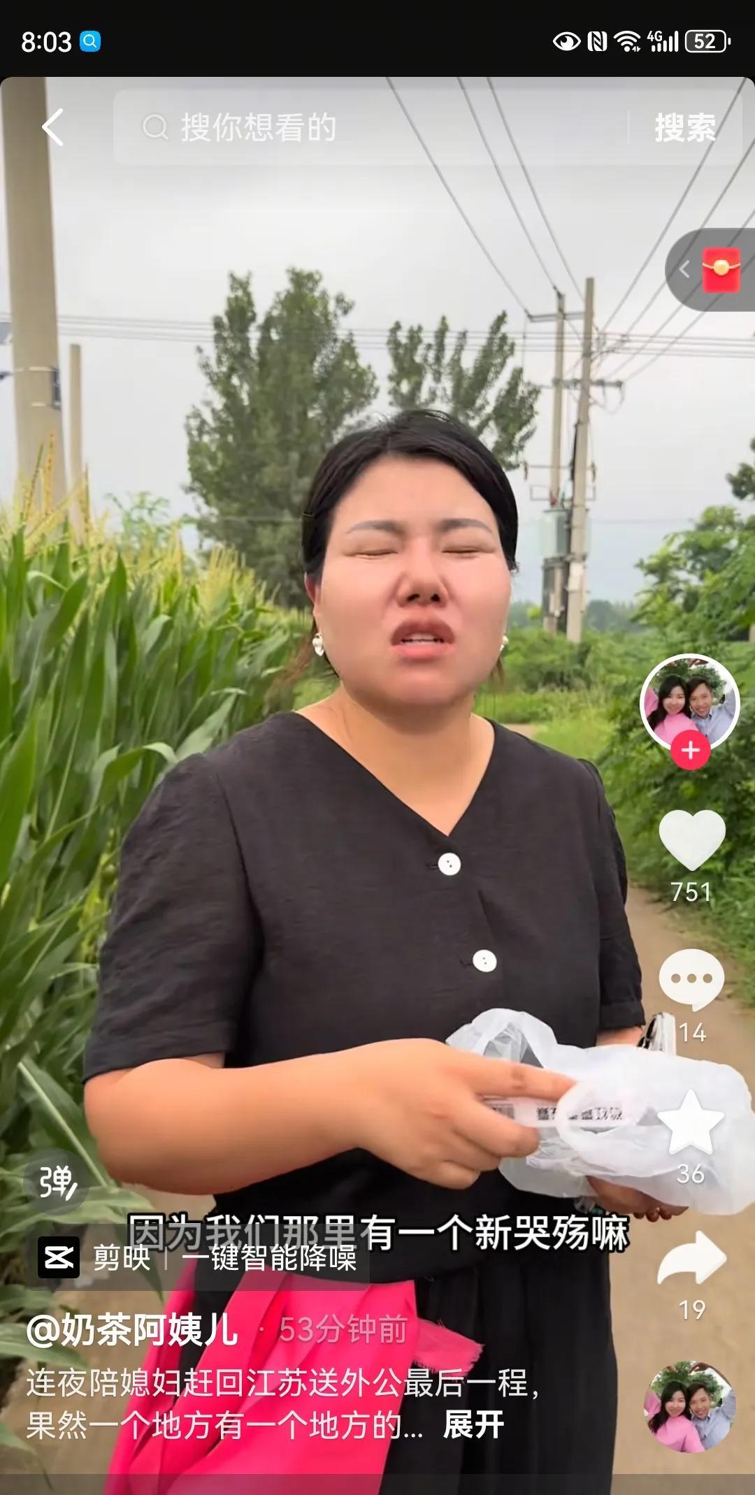 奶总龙哥已经火速赶到江苏了。 龙奶奶知道儿媳妇是个不急不慌的人,喜欢掐点出门,这不半夜还起来叫他们赶紧起床别错过车。奶总太忙,起来急着赶路还得拍视频,没化妆也没开特别多的美颜。整个脸黄黑浮肿,斑斑点点,龙哥嘴唇黑紫,两口子的颜值大打折扣,跟在卖货的直播间完全相反。 江苏老人过世的习俗跟咱这边还真完全不一样,奶总龙哥身上的粉红带子看着蛮滑稽。原来是孙子辈需要戴这个,辈分的区分是看身上佩戴的颜色。子辈白色,孙辈粉红,重孙红色,这倒是一目了然。不能理解的是为啥还要唱歌跳舞啊?去世也要庆祝一下吗? 听说老胡嗓子哭哑了哭疼了,贴心的龙哥马上就去买来了治喉咙发炎的药,难怪他能俘获奶总的心,太会了。老爷子养育三子三女,儿子都有三层小楼,生前他自己住偏僻的老房子,蜷缩在乱七八糟的破床上。现在去世后,儿女全到场,去一个人陪哭一场,请些乐队搞几天,表演给谁看啊?有这精力搞这些,还不如生前好好孝顺,让老人活着的时候开心一点儿,真搞不懂他们弄这些陋习的意义在哪里!
