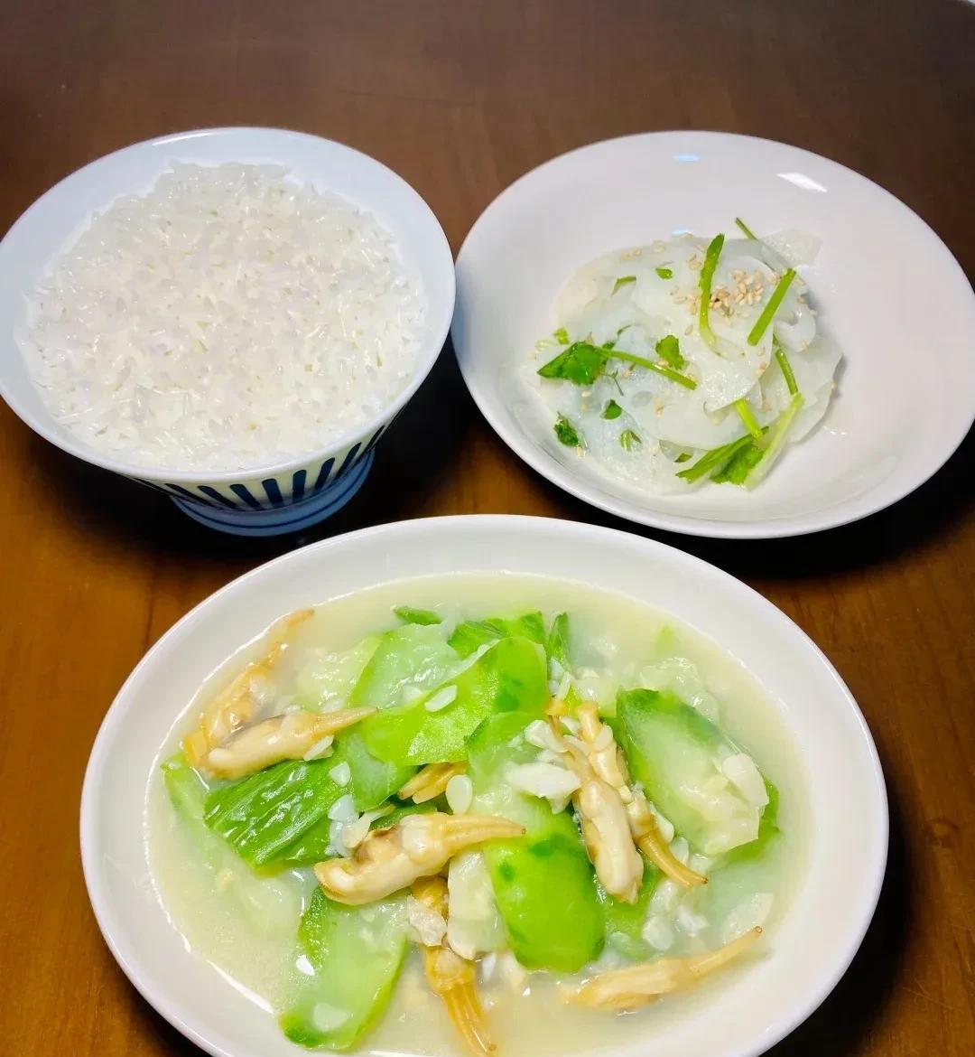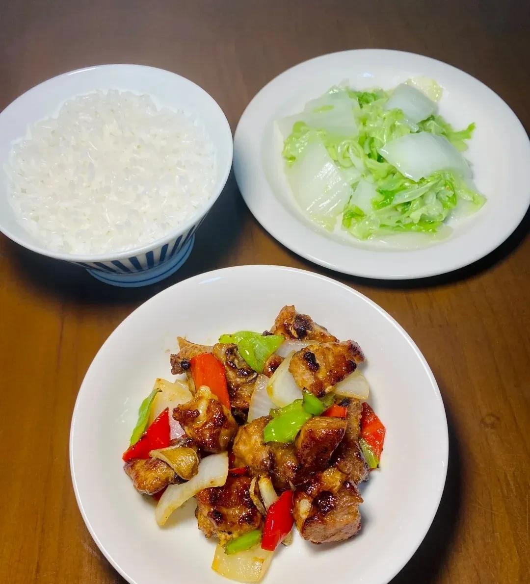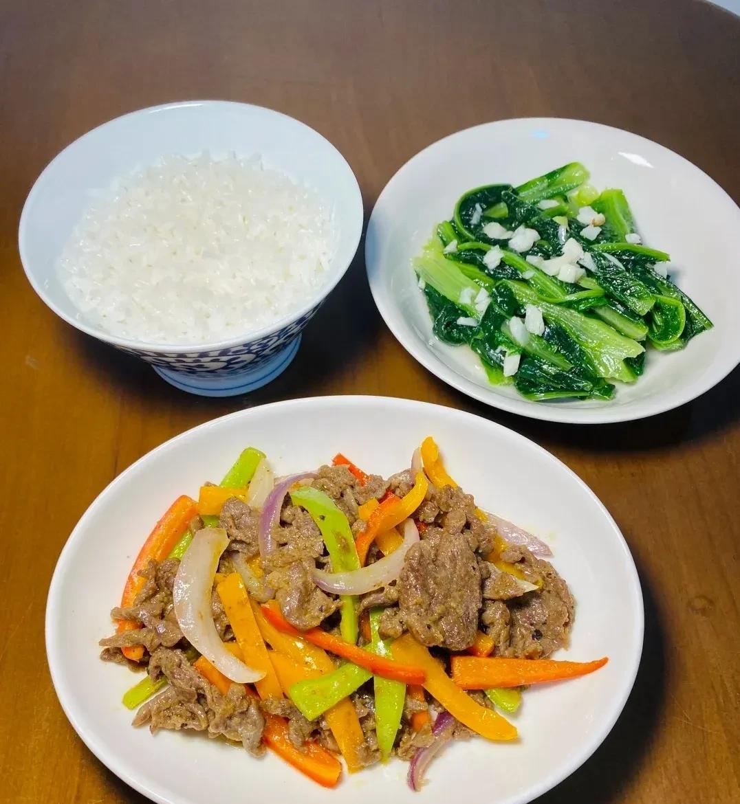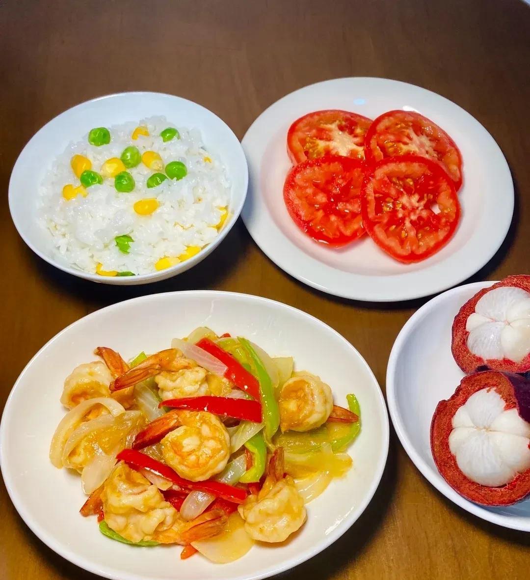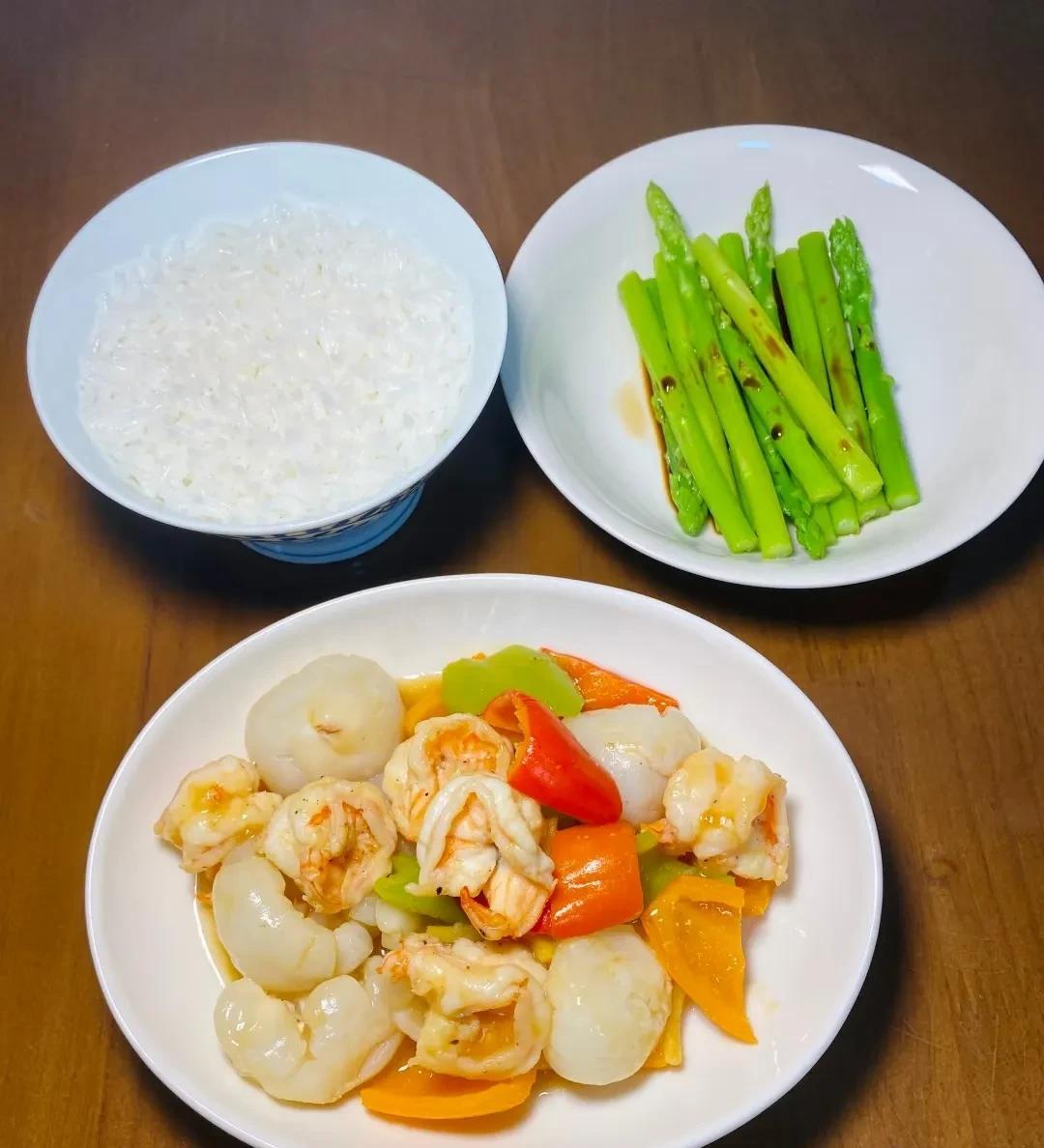 晚餐菜品展示 1.清蒸金鲳鱼+蒜蓉炒菠菜 2.蒸水蛋+清炒豆角 3.丝瓜炒蛏子+凉拌藕片 4.彩椒炒牛肉+清炒油麦菜 5.彩椒荔枝炒虾仁+白灼芦笋 6.香煎黄鱼鲞+炒茄子 7.肉沫炒土豆丁+清炒藕丝 8.青红椒洋葱虾仁+白糖番茄