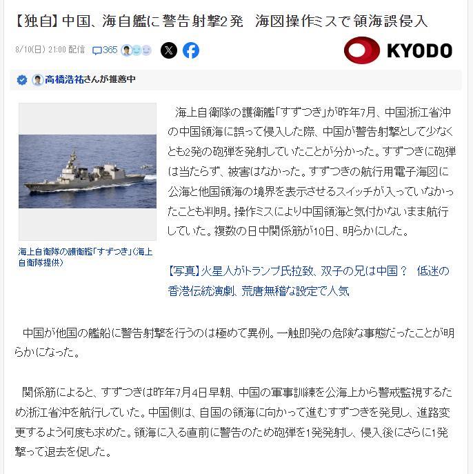 日媒报道,去年擅闯东大领海的“凉月”号驱逐舰曾遭中国军舰两次炮击警告! 去年七月,日本海上自卫队“凉月”号驱逐舰擅闯我国领海被警告驱离。当时这事儿在互联网引起了轩然大波,一众侄子集体高潮,甚至嘲讽咱们是有海无防。 直到昨天,日媒才报道了当时新闻报道中“警告驱离”的具体内容。原来,在“凉月”号进入咱们领海之前,就已经被盯上了。在其接近我国领海线时,前来负责警告驱离的我国军舰直接开炮警告一次。然而,日本军舰不予理睬,继续前进,进入我国领海,我国军舰再次开炮,击中其舰体附近激起巨大水花后才离开。 第一次开炮小日子军舰不可能没看到,所以这事儿压根就不是小日子说的技术故障导致的迷航。而是明显的试探性行为,想看看咱们底线究竟在哪里,以方便后续的挑衅行为。这是小日子和它爹的惯用伎俩了,没想到咱们这次这么硬,直接开炮了。#日本舰艇# #日本军舰#