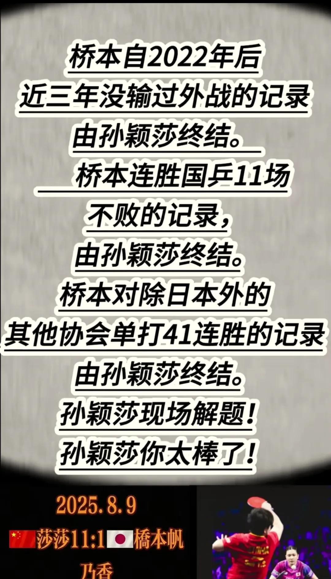 这次横滨冠军赛孙颖莎不是赢了桥本那么的简单,而是断送了桥本三年保持的不败神话。