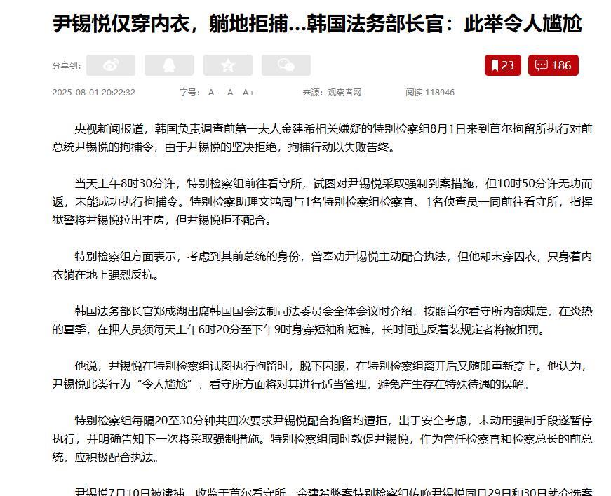 10个精壮小伙都拿不下?尹锡悦拒捕现场太辣眼睛,韩国政坛这出闹剧,把网友都给看傻眼了 韩国前总统尹锡悦又把特检组整不会了。10个年富力强的精壮小伙试图强行抬他去审讯,结果尹锡悦大喊“手要断了”拼死抵抗,连椅子带人摔地上都没被带走。 这已经是尹锡悦第二次拒捕了,6天前他就脱囚服躺平,3名检察官对峙2小时愣是没辙。 律师团队控诉“暴力执法”,但明眼人都懂:谁也不敢真弄伤前总统,尹锡悦正是吃准这点死扛到底。左翼政客急了,支招“用毯子裹走”“绳子捆担架抬”,甚至喊出“逮捕就是要打”,场面一度十分滑稽。 更绝的是,他老婆金建希扛不住压力,已配合调查6小时,特检组火速申请逮捕令,下周可能直接上门抓人。夫妻本是同林鸟,大难临头各自飞。 对比李明博靠财阀撑腰、朴槿惠借父荫体面,尹锡悦这个“政治素人”根基太浅。对手李在明早放话:“要让他终身监禁,永远别想赦免。”如今拘捕令已过期,特检组要么重申请要么缺席审判,这场拉锯战怕是还要闹一阵子。