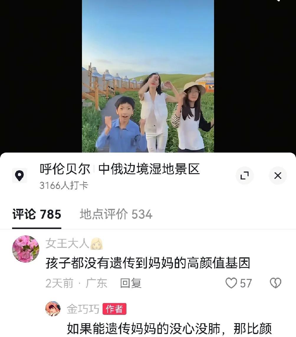 金巧巧发布与一双儿女跳舞的视频,评论区有人嫌弃她孩子不好看,说没遗传到她的高颜值