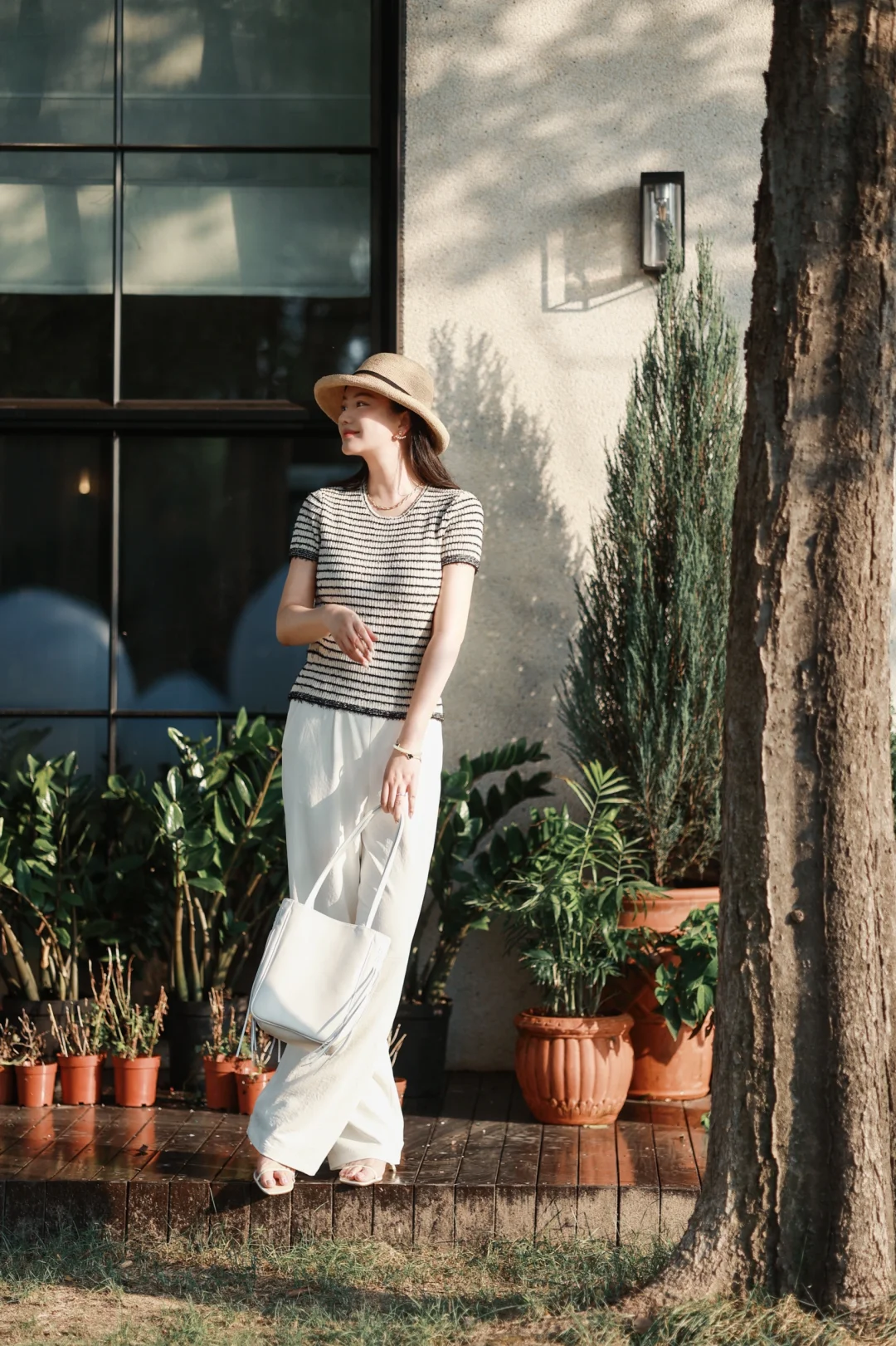 我的一些穿条纹的心机: ✔️条纹越细越显瘦 ✔️针织条纹也很显瘦 ✔️适宜搭配条纹上的纯色单品 这组黑白分明的条纹穿搭,成为我穿梭于城市经纬、从容应对所有场景的无声宣言。