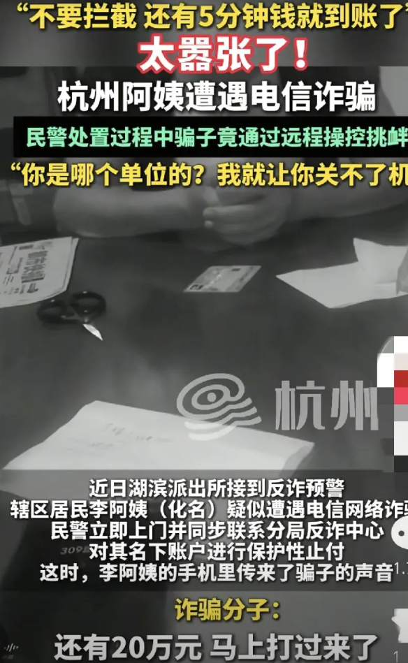 杭州阿姨遭到电信诈骗,找来民警帮助后,诈骗分子打来电话,嚣张说我就让你启不了,让你关不了,再等一下20万就打过来了,而民警强行把卡给拔出来,保住了阿姨的228万养老钱