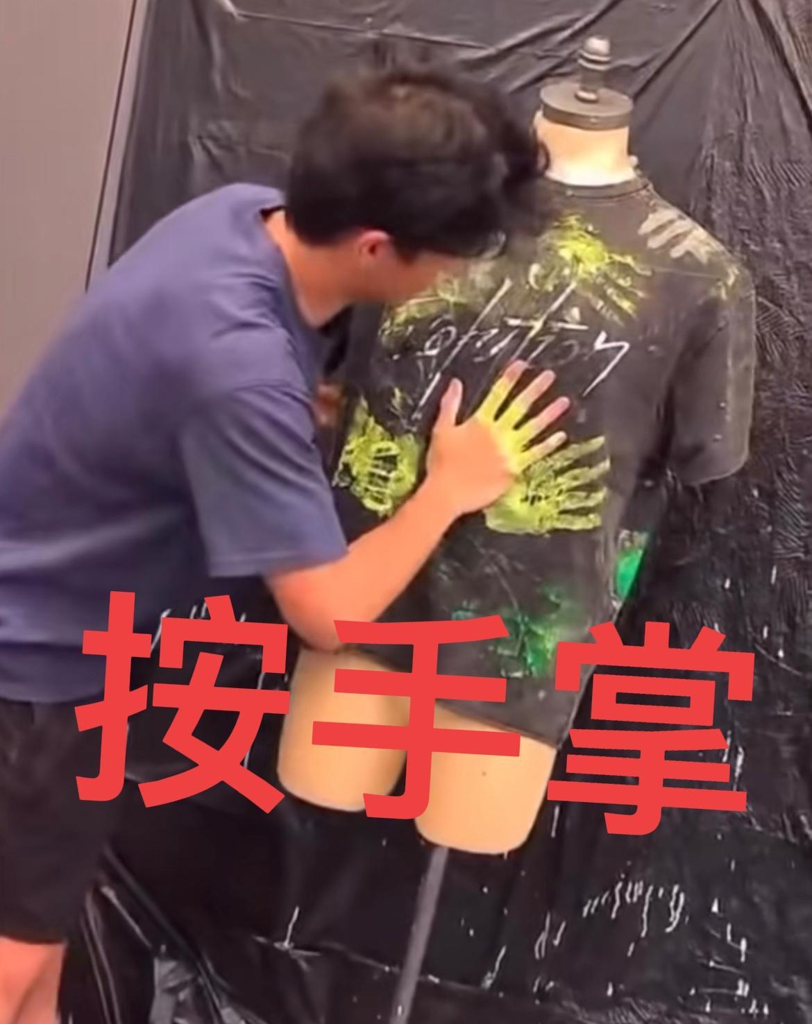 谢霆锋的这件衣服,没那么简单! 你以为的他自己DIY做的? 其实是有他大儿子的手掌印,说不准还有小儿子的,因为太小了,还不想让他出镜。 那么,你猜有没有王菲的手掌印?