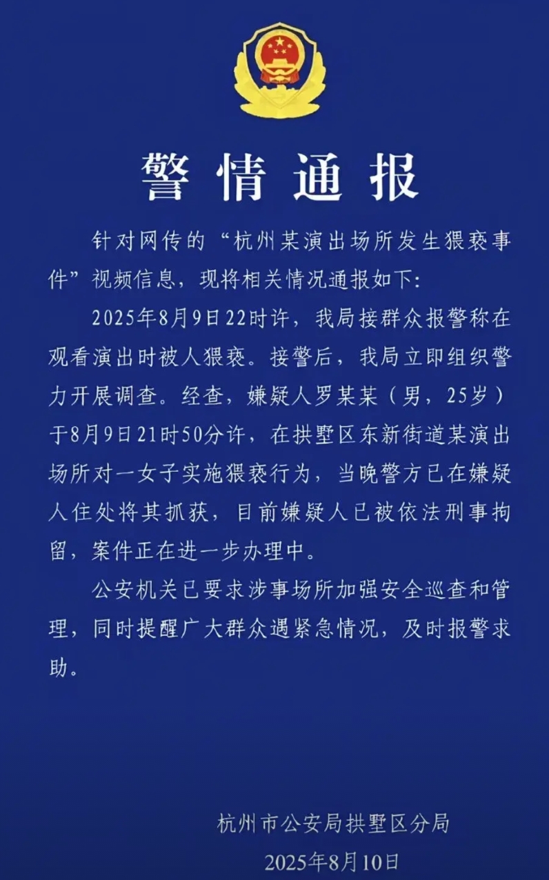 目前男子杭州公安给刑拘了,这下说出去可是丢人丢大了,自己在家里弄不好吗?非要跑到人多的地方找刺激,这下老实了吧。