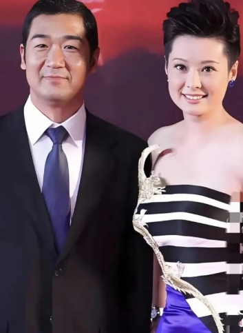 张国立穿着西装站在袁立身边,这西装革履的样子一点都不像演皇上的样子。