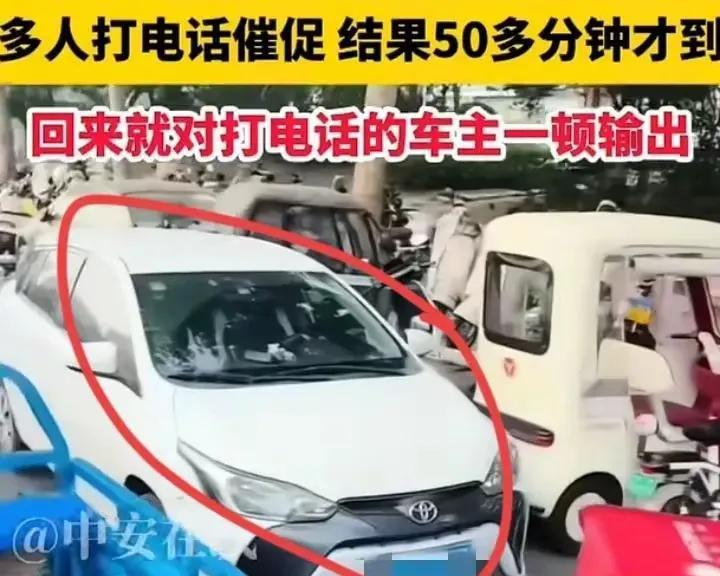 有司机看到白色轿车上的电话,打通后,女司机称正在办理酒店退房,5 分钟就下来。可谁能想到,这 5 分钟成了漫长的等待。现场多人给女司机打电话,她一直说等 5 分钟,后来直接挂断电话,让众人等了 50 多分钟她才现身。