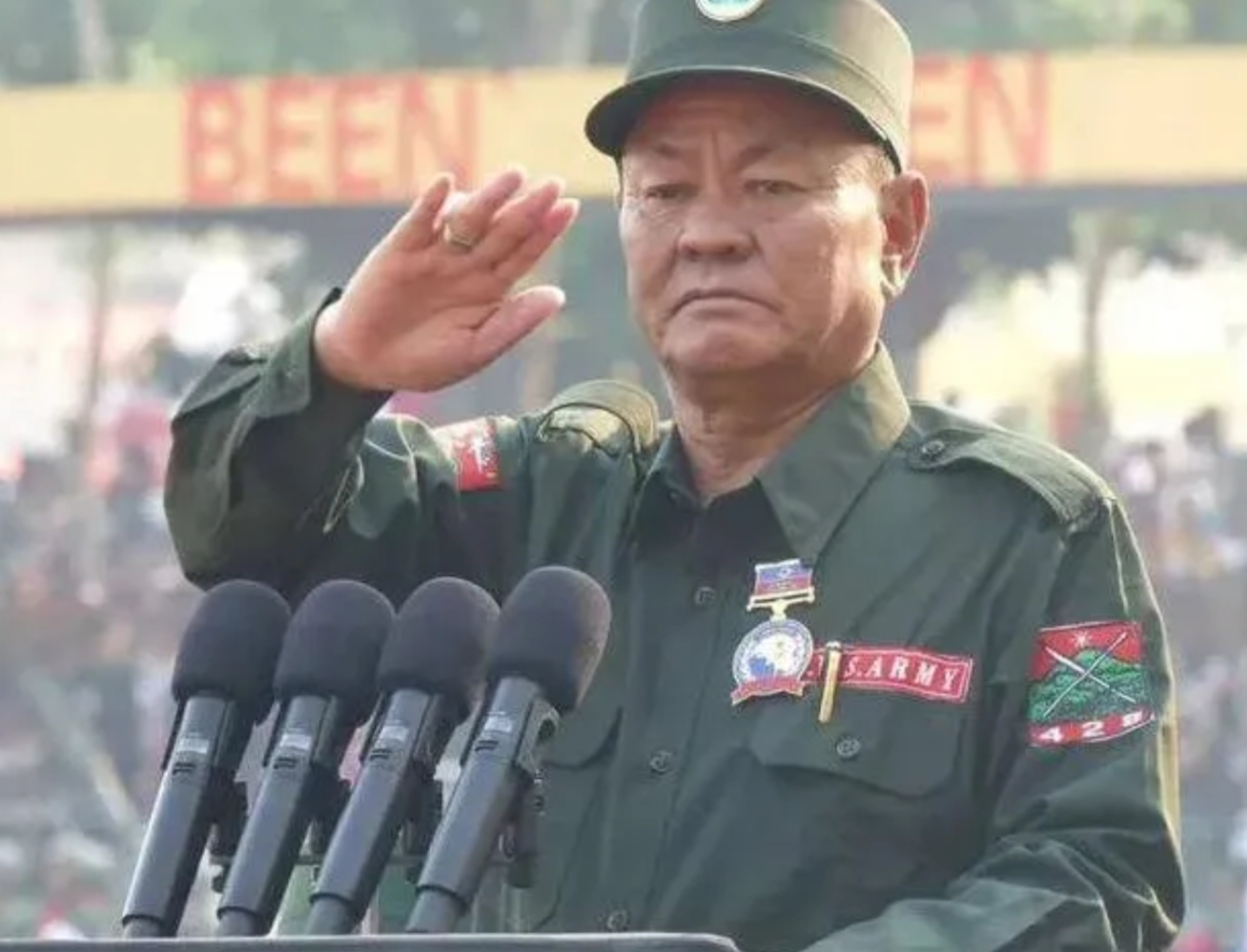 图右鲍有祥,出生于1949年,1969年,接受缅甸共产党的领导,担任营长;1975年担任缅甸共产党中部军区副总司令;1989年,跟自己的叔叔、兄弟、结义兄弟等联合起来,拥兵4万,脱离了缅甸共产党,成立佤邦联合军,担任总司令;1996年,联合缅甸政府军铲除金三角地区最大的竞争对手,位于南佤的电影上经常看到的毒王“坤沙”,成立佤邦政府,担任政府主席兼财政部部长,开始宣布禁毒,禁止农民种植罂粟,转向种烟、橡胶树,重视教育。