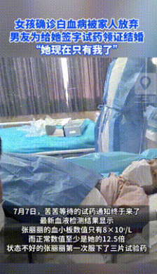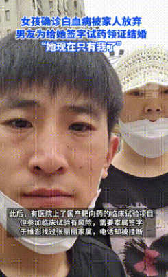 “万年一遇的好男人!”浙江杭州,一女子检查患上了白血病,没想到家人得知后,给了6000元后就不再接电话!就在女子绝望之际,男友却不离不弃,甚至为了能让女友能用上新药,坚持和她领证结婚!在接受采访时,男友的话让人泪目!