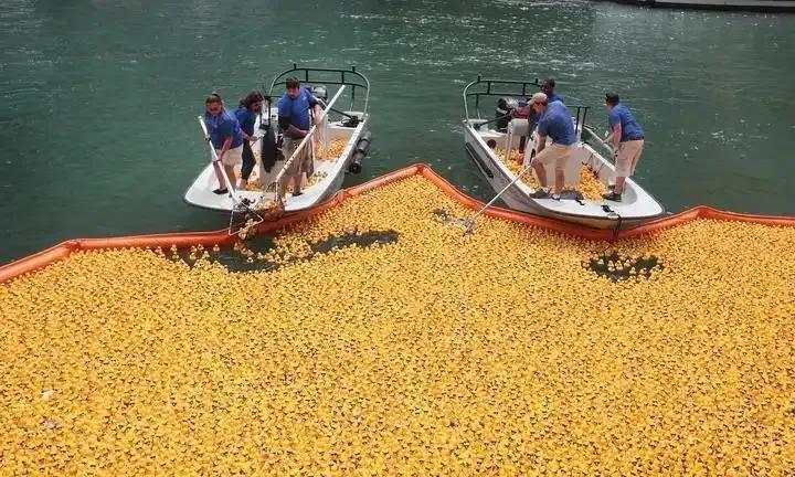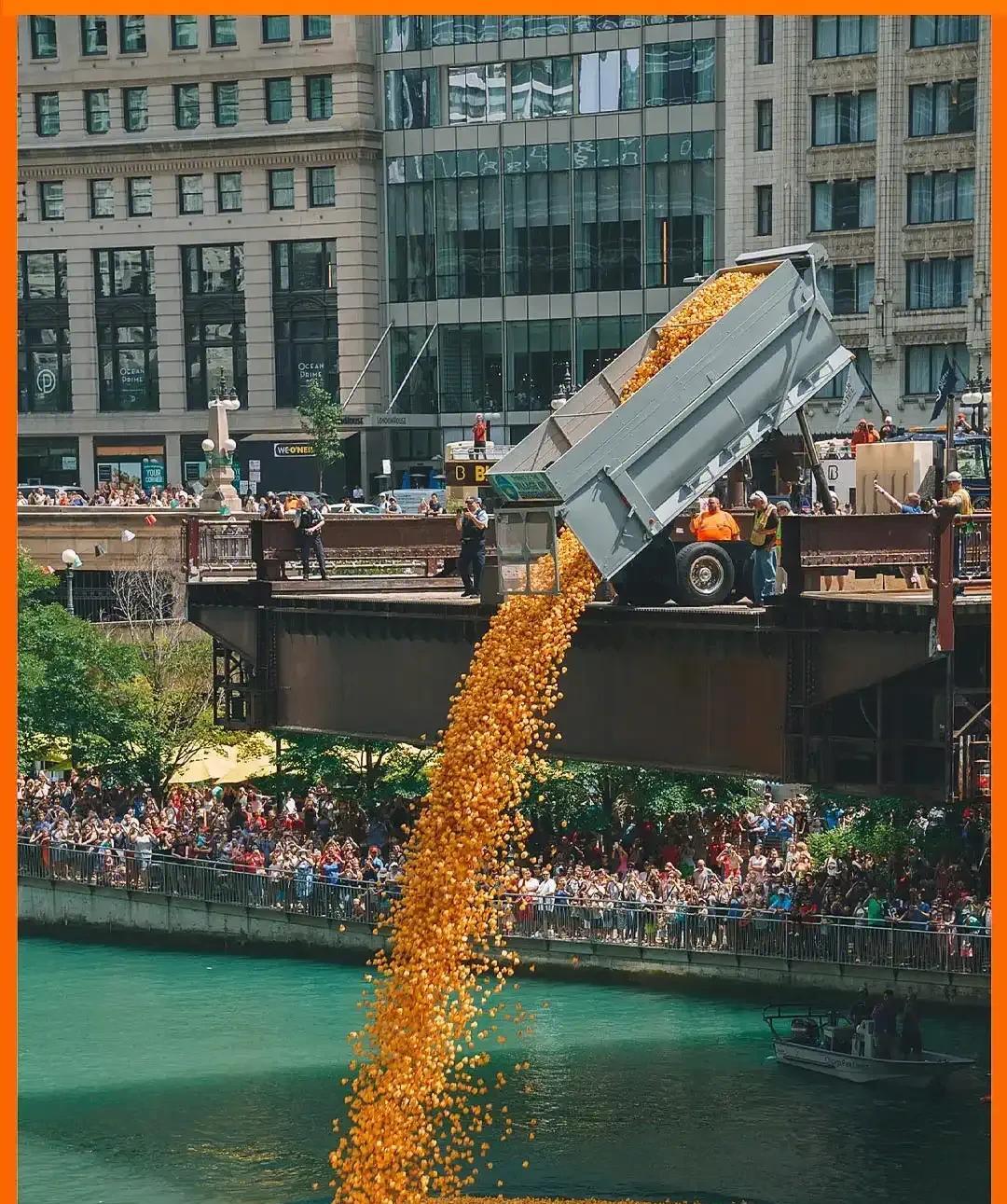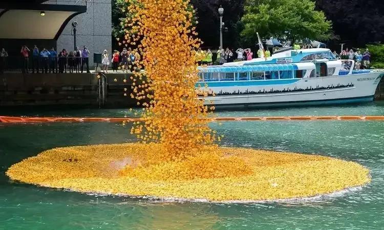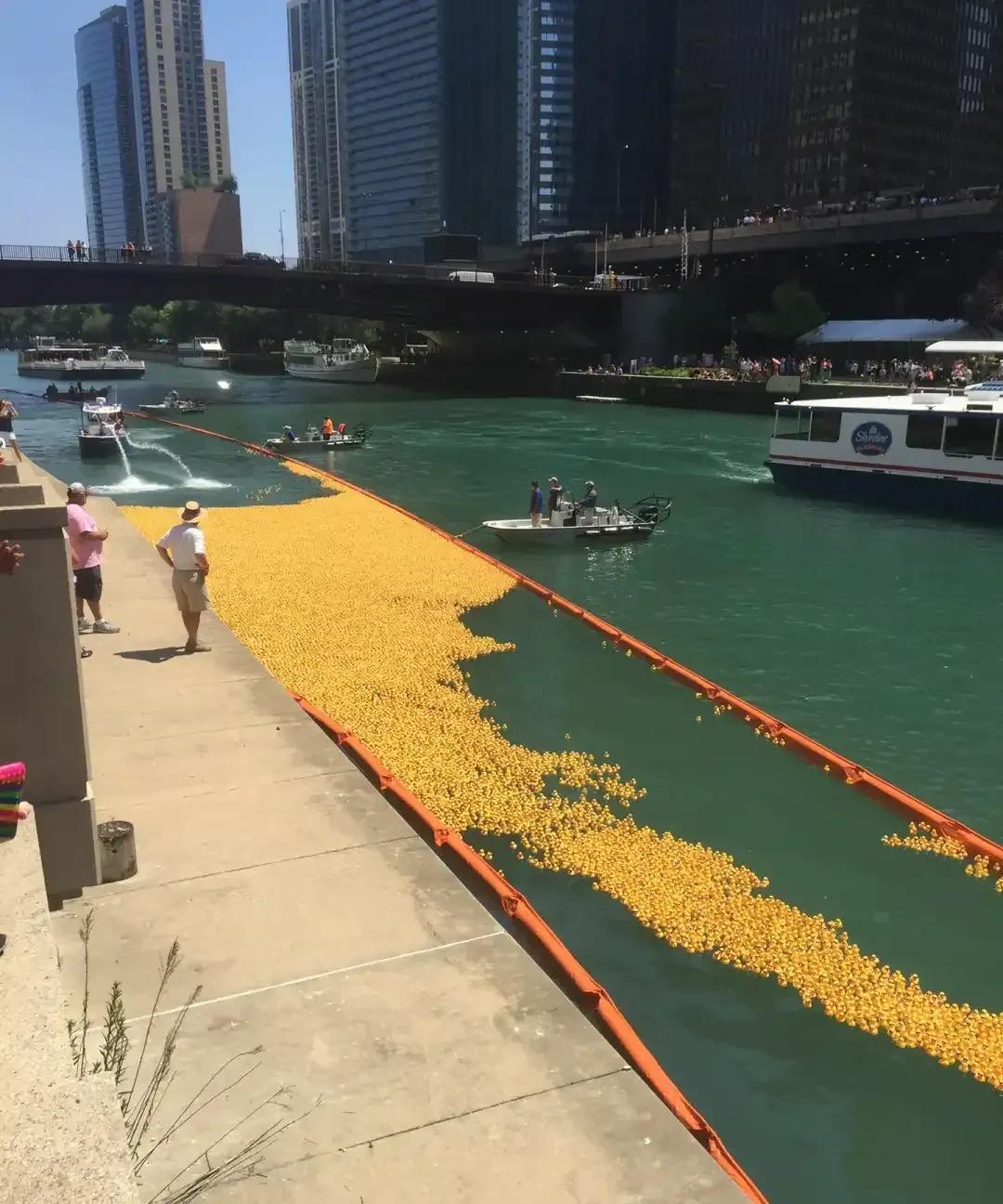 8.25万只小黄鸭漂进芝加哥河!这波操作太绝了! 2025年8月7日芝加哥河上演