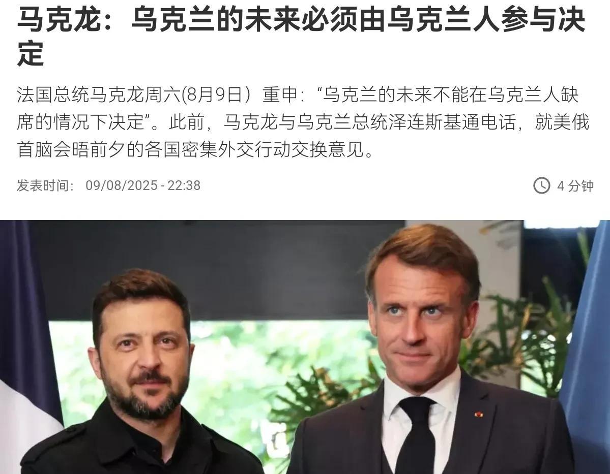 马克龙出来讲话了!在美俄领导人即将会晤之际,法国总统马克龙表示,乌克兰的未来不能在乌克兰人缺席的情况下决定——他们已为自由和安全奋战三年多,我们将继续本着团结精神支持乌克兰,并在‘志愿者联盟’框架下合作,推动在可能达成的俄乌和平协议中保障乌克兰的安全。 马克龙在美俄领导人会晤前公开表态。他强调乌克兰的未来不能在乌克兰人缺席的情况下决定,欧洲国家也必然将参与解决方案,因为这关乎欧洲的安全。 他还表示,法国将继续与泽连斯基及欧洲伙伴保持密切协调,在 “志愿者联盟” 框架下合作,推动在可能达成的俄乌和平协议中保障乌克兰的安全。 马克龙的表态有一个核心意思。那就是俄乌问题的解决,不能由美俄两国说了算。乌克兰必须上谈判桌,欧洲也必须上谈判桌。这背后有现实的考量。 其一,俄乌冲突已经持续三年多,战火虽然主要在乌克兰境内,但欧洲作为近邻,安全受到直接威胁。 其二,欧洲在能源、经济等方面与乌克兰和俄罗斯关联紧密,冲突长期化对欧洲的影响越来越大。所以,欧洲希望在谈判中拥有话语权,避免自身利益被忽视。 不过,马克龙的表态也有值得玩味的地方。泽连斯基此前明确表态,乌克兰不会将领土拱手相让。 但马克龙这一次既没有表态支持乌克兰领土与主权完整,也没有表态拿出更大的力度支持乌克兰。 这说明什么呢?这说明,恐怕对于以乌克兰牺牲领土换取和平的方案,法国也是默许的态度。 法国的这种态度可能有多重原因。其一,欧洲内部在对乌援助问题上存在分歧。一些国家因为经济压力、国内政治等因素,希望尽快结束冲突,哪怕需要乌克兰做出一定让步。 其二,美国的态度也在影响欧洲。特朗普政府希望快速促成停火,甚至暗示可能涉及领土交换。欧洲在安全上依赖美国,不得不考虑美国的立场。 其三,法国自身的经济和安全利益也在起作用。长期的冲突导致欧洲能源价格高企、经济衰退,法国可能希望通过妥协换取局势稳定。 这种情况可能带来一系列影响。对于乌克兰来说,如果欧洲默许领土换和平,乌克兰的抵抗意志可能会受到打击。 泽连斯基一直强调领土完整,如果被迫让步,可能引发国内政治动荡。 对于美俄来说,欧洲的参与可能增加谈判的复杂性。俄罗斯一直反对领土让步,而美国则希望尽快达成协议。 欧洲的介入可能让双方的立场更加难以调和。对于欧洲自身来说,如果支持领土换和平,可能会损害其在国际上的信誉,也会加剧欧盟内部的裂痕。 总的来说,马克龙的表态反映了欧洲在俄乌冲突中的现实困境。一方面,欧洲希望维护自身安全和利益,在谈判中拥有话语权。 另一方面,经济压力和美国的态度又让欧洲难以坚定地支持乌克兰的领土完整。这种矛盾的心态,可能会让俄乌问题的解决更加复杂。