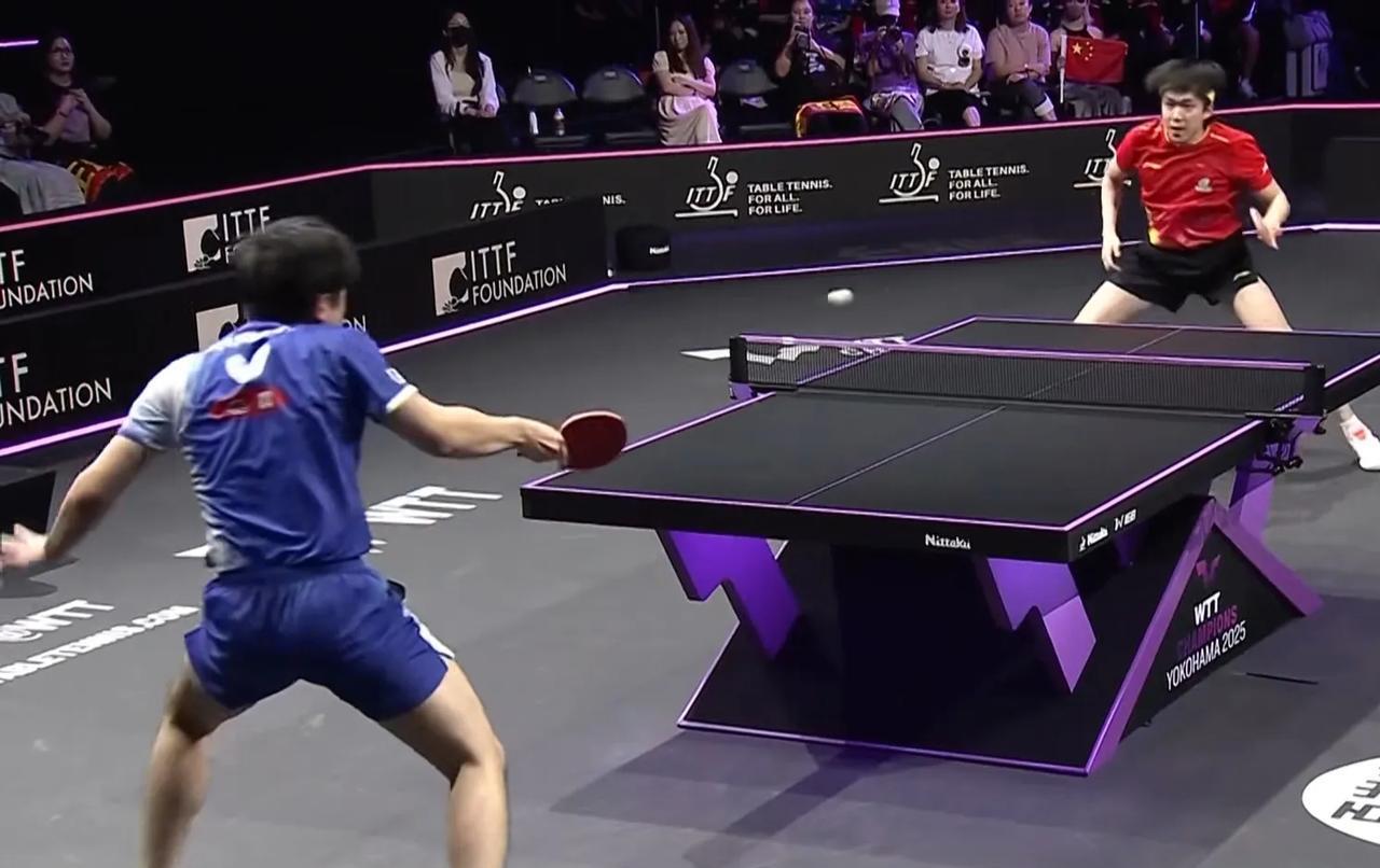 王楚钦不敌张本智和。 王楚钦与张本智和的这场比赛, 在第五局,张本智和在4:2领先, (大比分张本智和3:2领先的情况下) 被王楚钦追分后, 要了医疗暂停。 王楚钦与王皓教练一起有说有笑, 耐心的等待,超过了5分钟, 这个节点很重要。 医疗暂停回来, 张本智和也是火力全开, 出手更快了。 这场比赛, 张本智和打长球, 硬碰硬的打,前三板以防为, 相持打长球, 再加上主场优势, 喊叫声也很大,每赢一球, 也是大动作庆祝。 王楚钦的手感不好, 追求一板过,上案率不高, 自己失误偏多了。