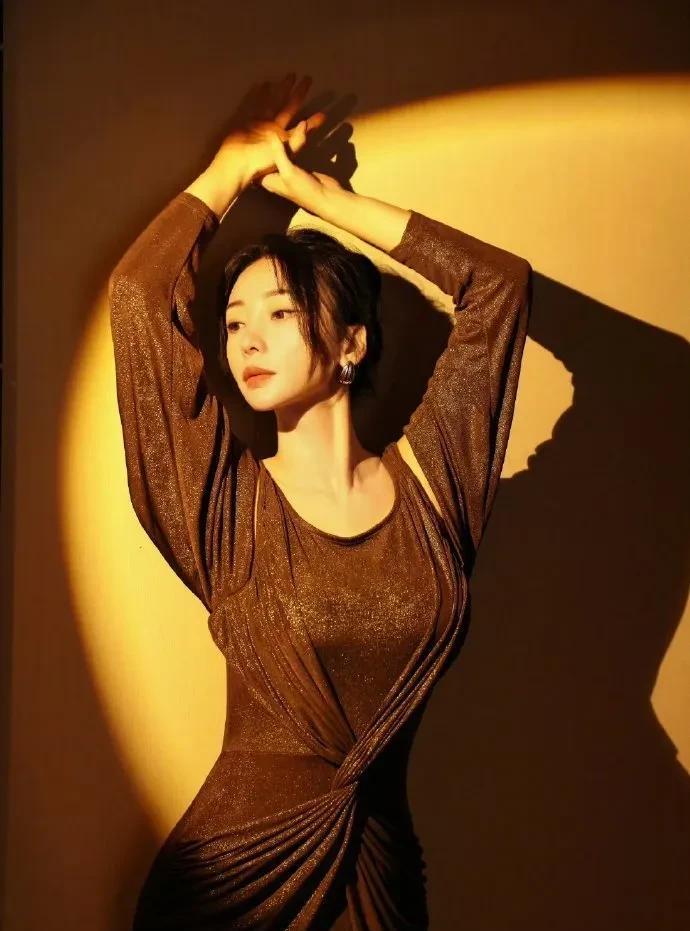 柳岩穿鎏金褶皱裙,盘发配耳饰,或举手、或补妆,皮肤透亮,曲线火辣到让镜头都“挪不开眼”,性感杀疯!
