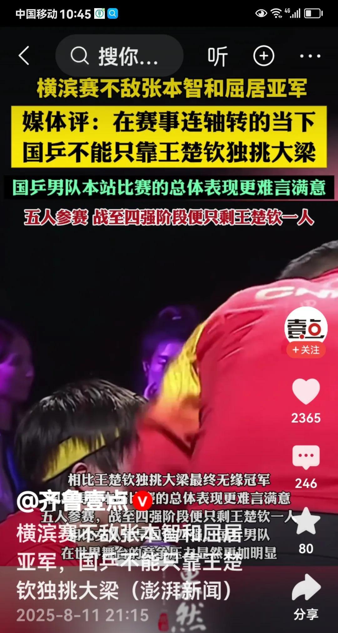 击败王楚钦后,张本智和很骄傲。 他在接受日本媒体采访时丝毫没有掩饰自己一贯的风格