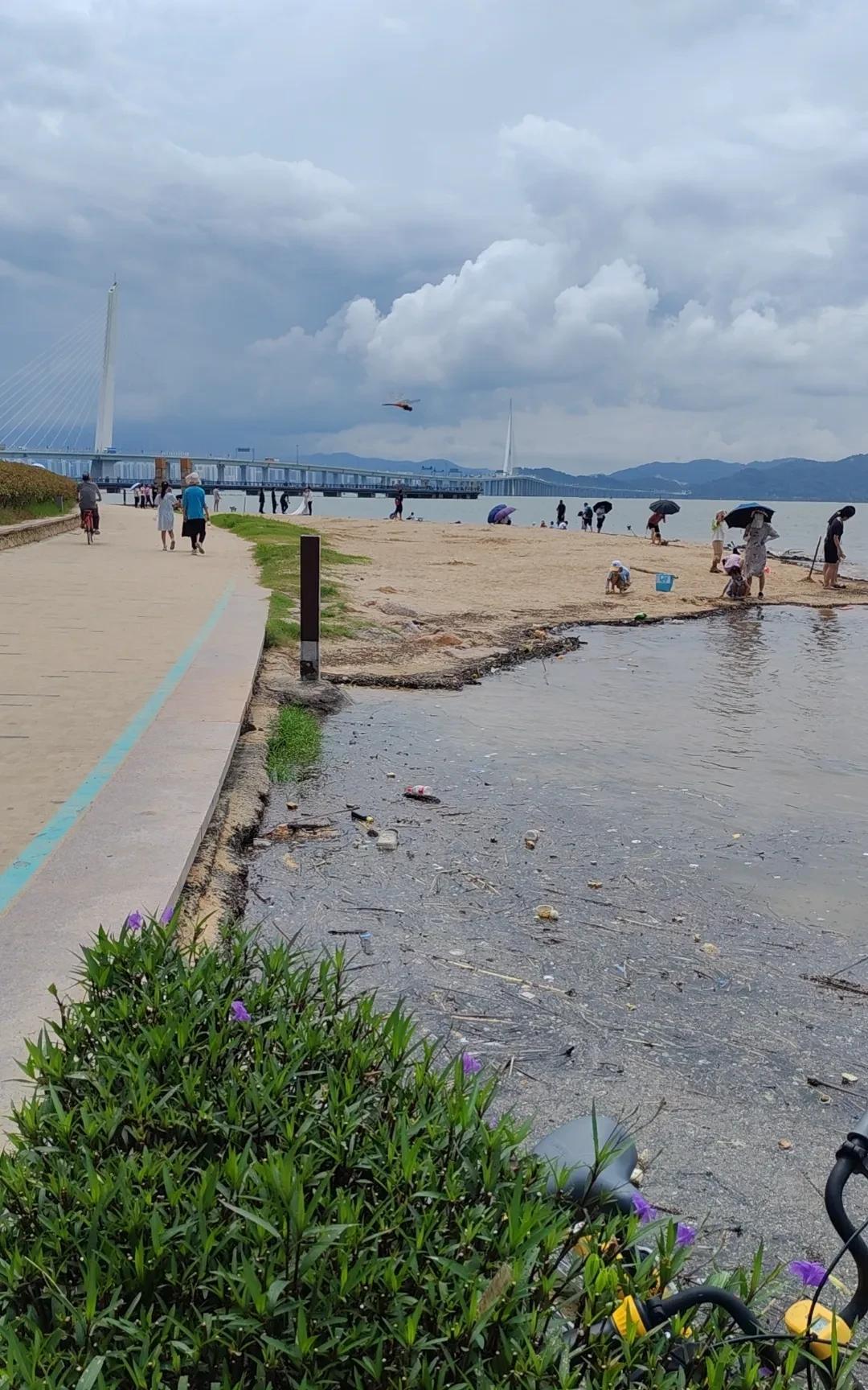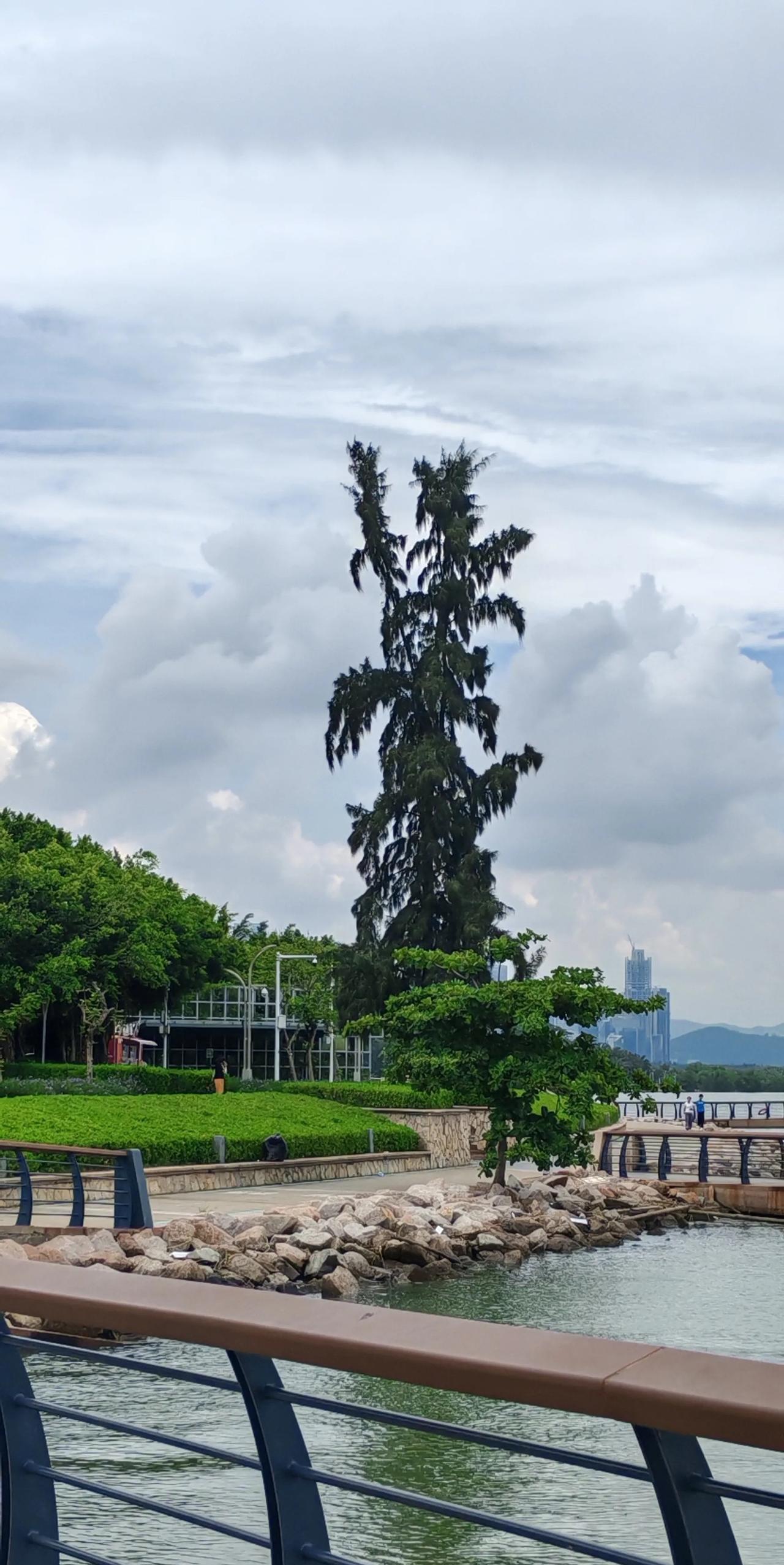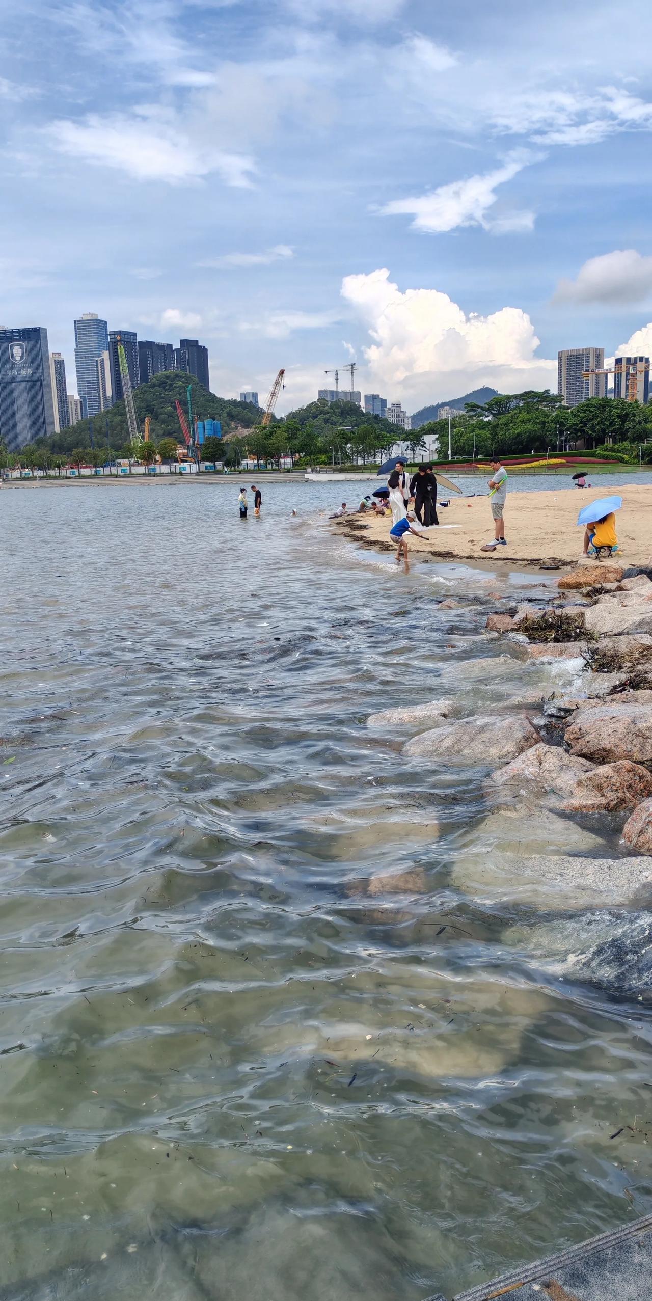 昨天休息,早上下班后,洗漱完,煮了大米粥。 煮好后,想着凉凉再吃,就躺床上休息了。 一觉睡到了9点多。看看窗外是个晴天,就想去深圳湾公园看看海水最大潮。 分别在豆包和DS上查了查,两个给出的结果还不一致。但DS建议我去深圳市规划和自然资源局潮汐表去查询,果然还是潮汐表准。 但最大潮是10点51分,于是赶紧吃了两碗粥,换好衣服手机充满电就出发了。 骑上单车以最快的速度赶到了深圳湾公园。 果然今天的潮比上次高了好多,接近人行道了。 但海水比较浑浊,许多枯木和鱼柴被冲到了岸边。 看了一会,沿着湜岸向前走,走走停停,一路看着沿岸风光,心情时而快乐时而忧伤。 为什么心情这么复杂呢?因为看见花开红,蓝天白云,就感觉心旷神怡。 看见枯枝败叶,就感叹生命无常,走在岸边有种恍如隔世的感觉。 我的目标是想走到人才公园的,然后再走出人才公园回去。 耽心和人才公园不相通,还问了两个路人,嗨,还没有我懂呢!记得一位大哥曾经告诉过我,你问路就问穿制服的人,比如保安,外卖员,清洁工。 好不容易遇见一位公园清洁工,他很明确的告诉我可以去人才公园,从桥底下穿过去。 于是我顶着烈日走啊走啊,终于到了。 人才公园门口有许多共享单车,但不让骑进去。 看见这些单车,我是一步也不想走了,索性骑上单车原路返回了。 来时走了4小时的路程骑车25分钟就到了深圳湾公园门口。 又骑了半小时就到家了。 一路上又渴又饿,路过一家蔬菜水果超市,我的眼睛都放绿光了。 扯了几个自撕袋就开始装水里,五个桔子,三个桃子,10个李子。 进屋打开风扇开了空调洗了水果,就开始狂炫。 这是我吃的最好吃的水果了。 事实证明,出去户外走走太好了,最起码吃嘛嘛香了。 再分享几张我拍的照片。 这个休息日过得就完美了。