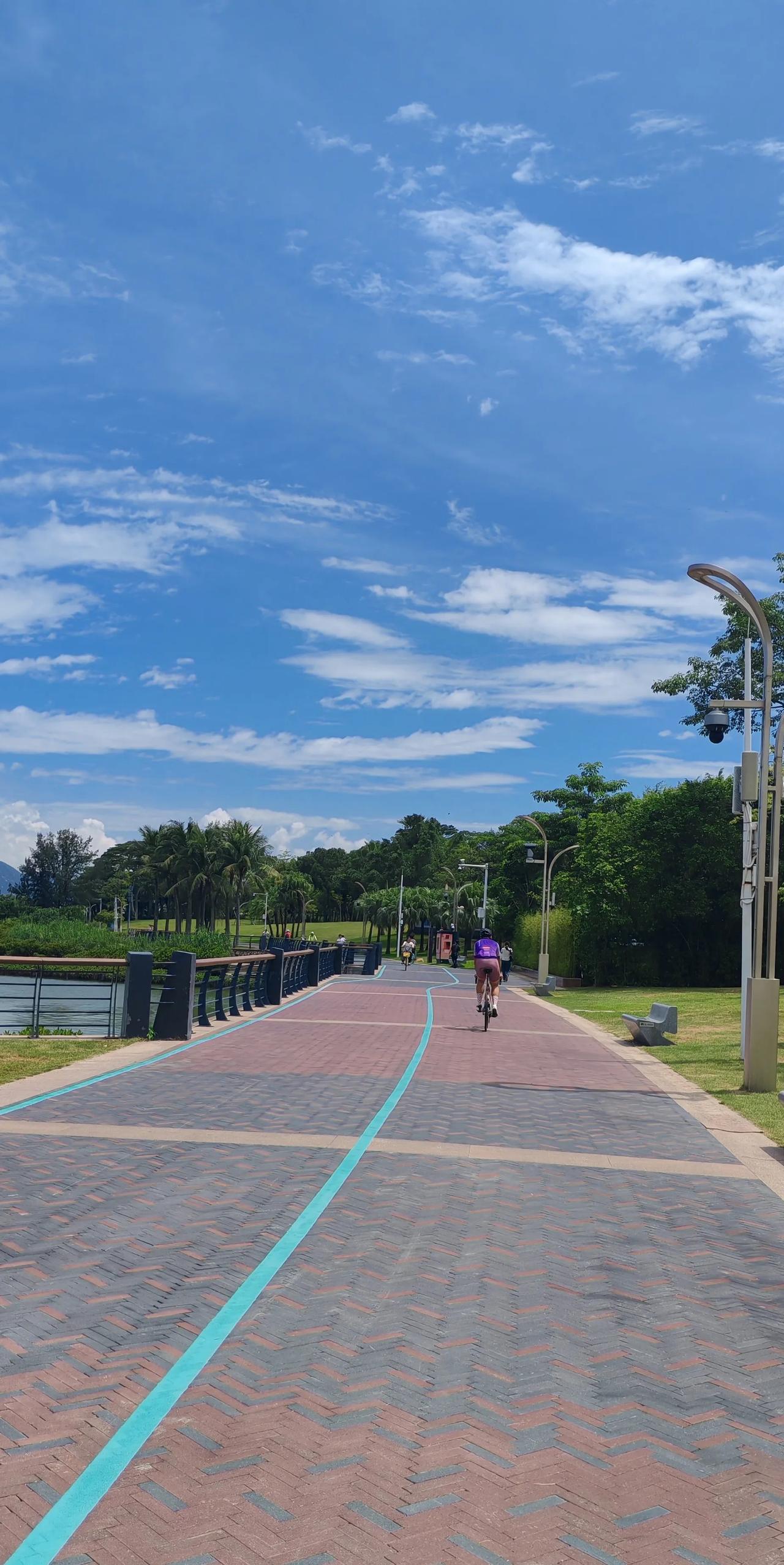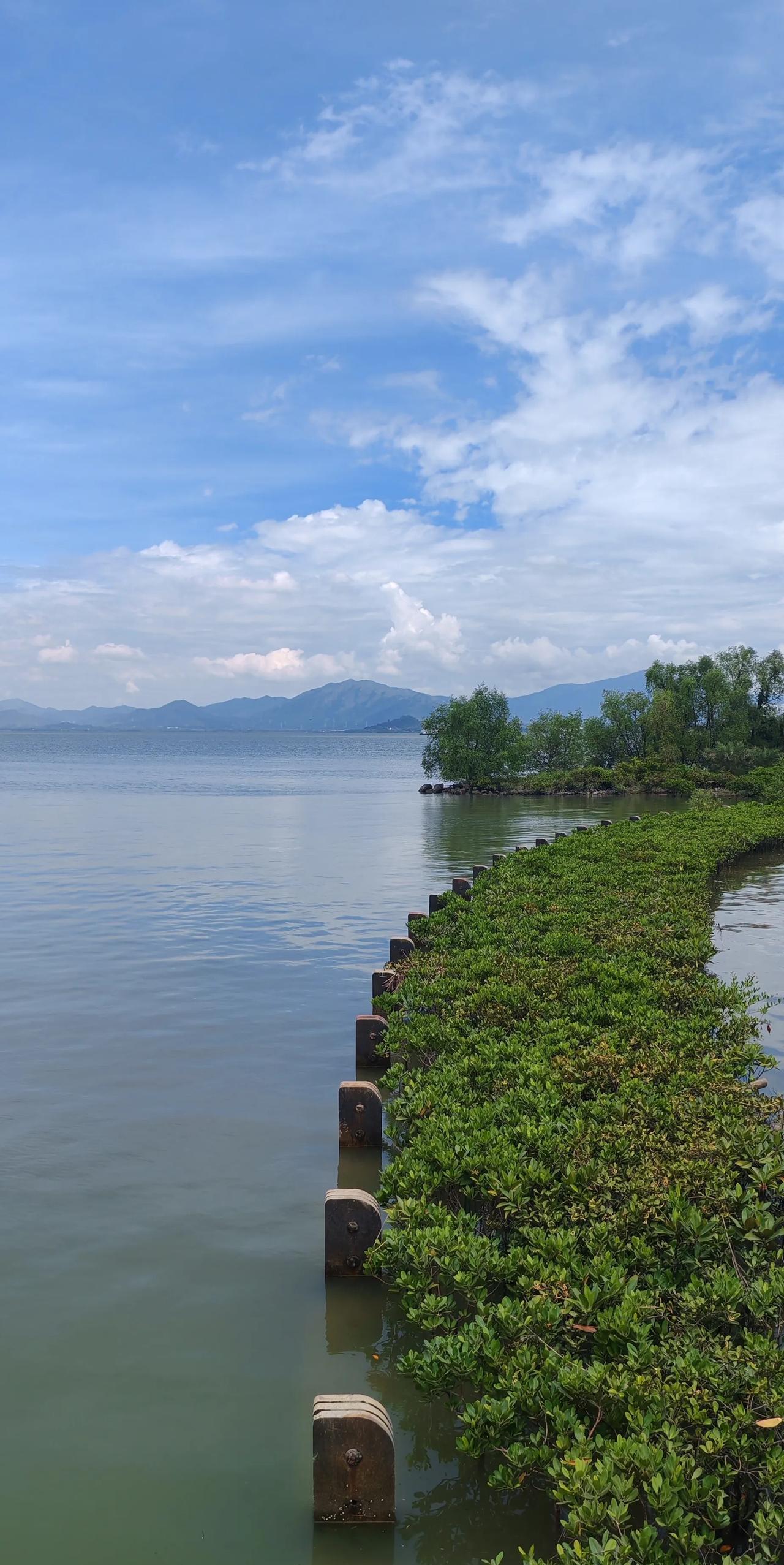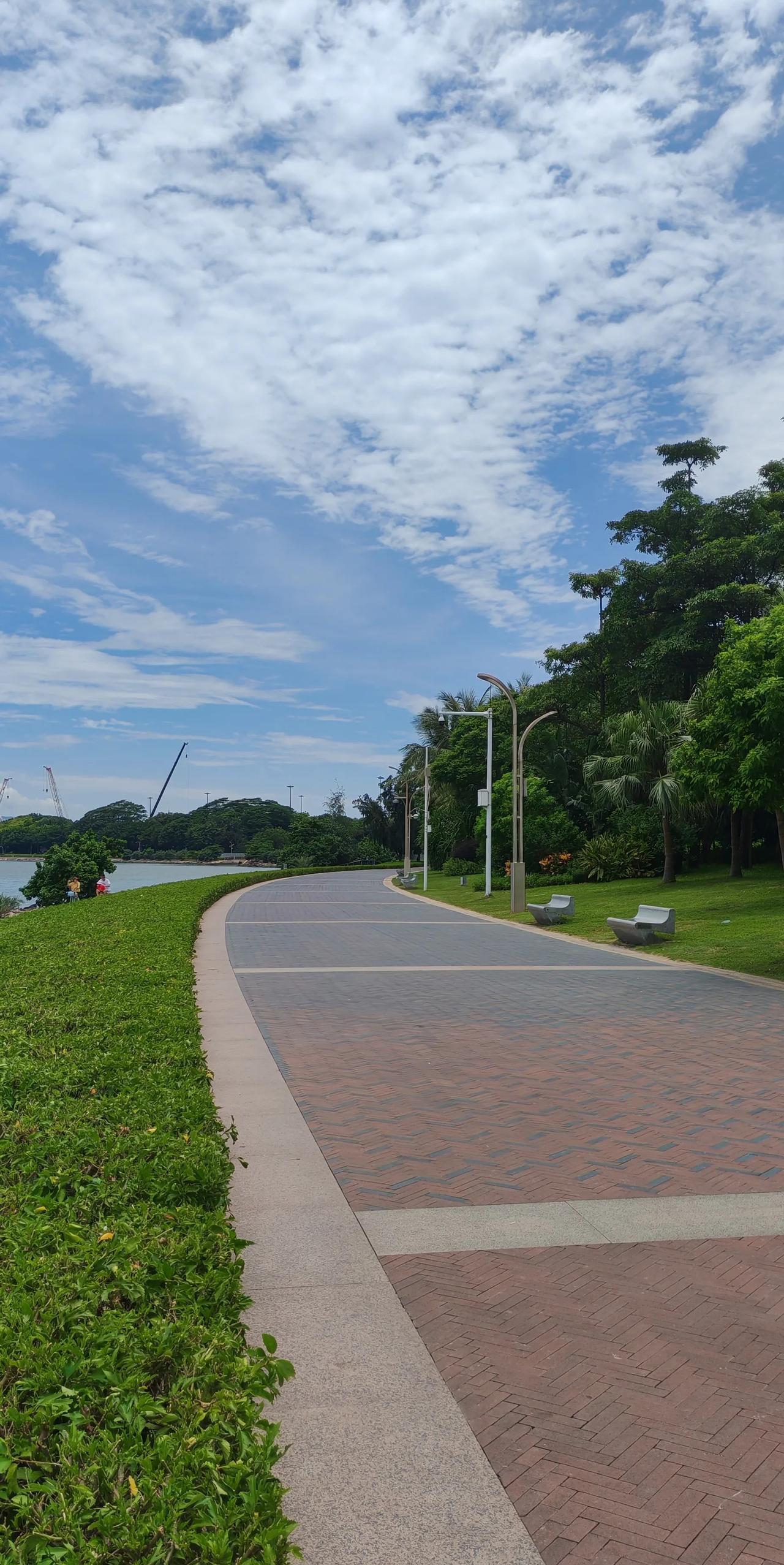 昨天休息,早上下班后,洗漱完,煮了大米粥。 煮好后,想着凉凉再吃,就躺床上休息了。 一觉睡到了9点多。看看窗外是个晴天,就想去深圳湾公园看看海水最大潮。 分别在豆包和DS上查了查,两个给出的结果还不一致。但DS建议我去深圳市规划和自然资源局潮汐表去查询,果然还是潮汐表准。 但最大潮是10点51分,于是赶紧吃了两碗粥,换好衣服手机充满电就出发了。 骑上单车以最快的速度赶到了深圳湾公园。 果然今天的潮比上次高了好多,接近人行道了。 但海水比较浑浊,许多枯木和鱼柴被冲到了岸边。 看了一会,沿着湜岸向前走,走走停停,一路看着沿岸风光,心情时而快乐时而忧伤。 为什么心情这么复杂呢?因为看见花开红,蓝天白云,就感觉心旷神怡。 看见枯枝败叶,就感叹生命无常,走在岸边有种恍如隔世的感觉。 我的目标是想走到人才公园的,然后再走出人才公园回去。 耽心和人才公园不相通,还问了两个路人,嗨,还没有我懂呢!记得一位大哥曾经告诉过我,你问路就问穿制服的人,比如保安,外卖员,清洁工。 好不容易遇见一位公园清洁工,他很明确的告诉我可以去人才公园,从桥底下穿过去。 于是我顶着烈日走啊走啊,终于到了。 人才公园门口有许多共享单车,但不让骑进去。 看见这些单车,我是一步也不想走了,索性骑上单车原路返回了。 来时走了4小时的路程骑车25分钟就到了深圳湾公园门口。 又骑了半小时就到家了。 一路上又渴又饿,路过一家蔬菜水果超市,我的眼睛都放绿光了。 扯了几个自撕袋就开始装水里,五个桔子,三个桃子,10个李子。 进屋打开风扇开了空调洗了水果,就开始狂炫。 这是我吃的最好吃的水果了。 事实证明,出去户外走走太好了,最起码吃嘛嘛香了。 再分享几张我拍的照片。 这个休息日过得就完美了。