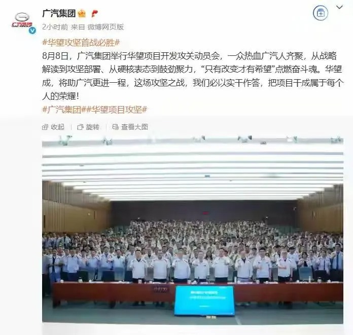 广汽集团刚表态,和华为合作的华望项目攻坚首战必胜,就在8月8号,广汽搞了华望项目开发攻关动员会,从战略解读到攻坚部署,每个环节都透露着势在必得的劲儿。 官方还说“华望成,将助广汽更进一程”,看来华望对广汽来说,真的是高端市场破局的关键一步! 华望汽车可是广汽和华为联手打造的高端智能新能源汽车品牌,定位30万级高端市场。从合作模式就能看出他们的野心:广汽握着控股权,保证品牌独立性;华为主导产品定义、设计、研发和营销这些关键环节,提供智能驾驶软件、鸿蒙智能座舱等全栈解决方案,分工明确,优势互补 据说华望汽车已经规划了两款车型,一款轿车和一款SUV,纯电和增程都安排上了,预计明年就和大家见面。想象一下,开着一辆融合了广汽制造实力和华为智能科技的车,智能驾驶、智能座舱一应俱全,出行体验直接拉满,谁能不期待? 现在20 - 30万的新能源市场竞争已经很激烈了,华望这时候冲进来,并且喊出“首战必胜”,勇气可嘉。但也有人质疑,这口号喊得响亮,真能实现吗? 大家觉得华望汽车能成功破局,在高端市场站稳脚跟吗评论区聊聊你的看法吧!