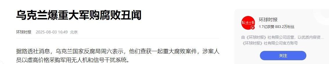 乌克兰人终于觉醒了!真正的敌人不是俄罗斯的坦克飞机大炮,而是内部的腐败! 乌克兰腐败到了何种程度?说出来令人难以置信。 据一位前线乌军士兵透露,在哈尔科夫,因为阵亡的士兵太多太多,后方的火葬场不堪重负,于是在前线设置移动火葬场。 原本这看似是无奈之举,可深挖下去,竟发现这跟腐败密切相关。 那些负责殡葬事务的官员,居然勾结不法商人,以高价采购移动火葬设备,从中谋取巨额回扣。 本可以用更低成本采购到实用设备,却因为他们的贪婪,让国家财产白白流失,而这些钱,本可以用来购买更多的武器装备,或者改善士兵们的生活条件。 而这仅仅只是冰山一角。 路透社 8 月 3 日消息称,乌克兰国家反腐局查获一起重大腐败案件,涉案人员以虚高价格采购军用无人机和信号干扰系统。 该腐败案的核心是与供应公司签订国家合同,并故意抬高价格。涉案人员从合同中收取高达30%的回扣。目前已有4人被逮捕。 要知道,在如今激烈的俄乌冲突中,这些装备对于乌军的作战至关重要。 战场上每一架性能良好的无人机,都可能为乌军提供关键的侦察情报,每一套有效的信号干扰系统,都能在关键时刻干扰俄军的通信和指挥。 然而,腐败分子却为了一己私利,让采购价格远超正常水平。这不仅造成了资金的极大浪费,更可能导致乌军在装备数量和质量上处于劣势。 据前线士兵反馈,很多采购来的无人机,要么飞行性能不佳,在执行任务时频繁出现故障,要么续航能力太差,根本无法深入俄军控制区域进行有效侦察。 而信号干扰系统,也常常无法发挥应有的作用,在关键时刻掉链子。 这背后,都是腐败带来的恶果。 想象一下,在激烈的战斗中,士兵们满心期待着这些装备能够给予他们支持,可最终却发现这些花了大价钱买来的东西,根本无法帮助他们,甚至可能因为装备的不给力,让他们陷入更加危险的境地。 乌克兰国内的腐败问题,从政府高层到基层官员,几乎无处不在。 从物资采购,到工程项目招标,再到军事装备购置,都成为了腐败分子的敛财途径。这种腐败现象,严重削弱了乌克兰的战争潜力。 本就面临着强大俄军压力的乌军,内部还被腐败蛀虫侵蚀,这无疑是雪上加霜。 乌克兰政府如果不采取强有力的措施整治腐败,恐怕在这场冲突中,将会陷入更加被动的局面。 大家怎么看乌克兰这愈演愈烈的腐败问题呢?它又将对俄乌冲突的走向产生怎样的影响?