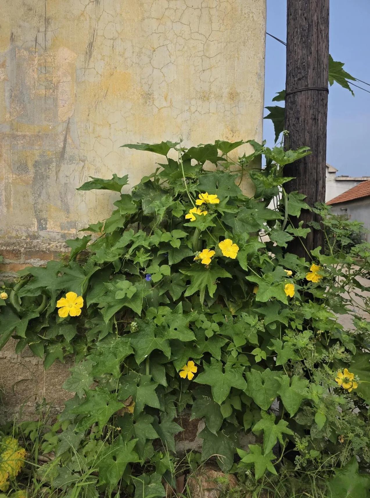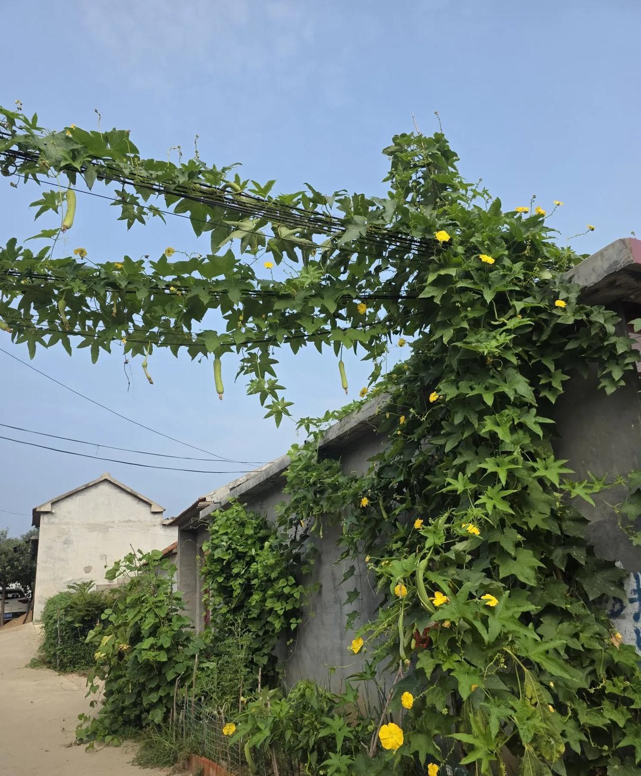 村里的另一种风景…… 夏天的乡村,除了温度高和苍蝇蚊子多这两个缺点外,其他各方面都很好,瓜果梨桃,各种蔬菜,应有尽有。关键是村里村外,田边河岸,尤其山坡上,草长莺飞,郁郁葱葱,真的是生机无限。 夏天里,村里还有另一种风景,那就是乡亲们在各自房前屋后种的蔬菜,花儿鲜艳,果实累累。夏季蔬菜,茄子、辣椒、西红柿,豆角、芸豆菜葫芦,丝瓜、黄瓜、家家户户都种着,既实用,又美观。