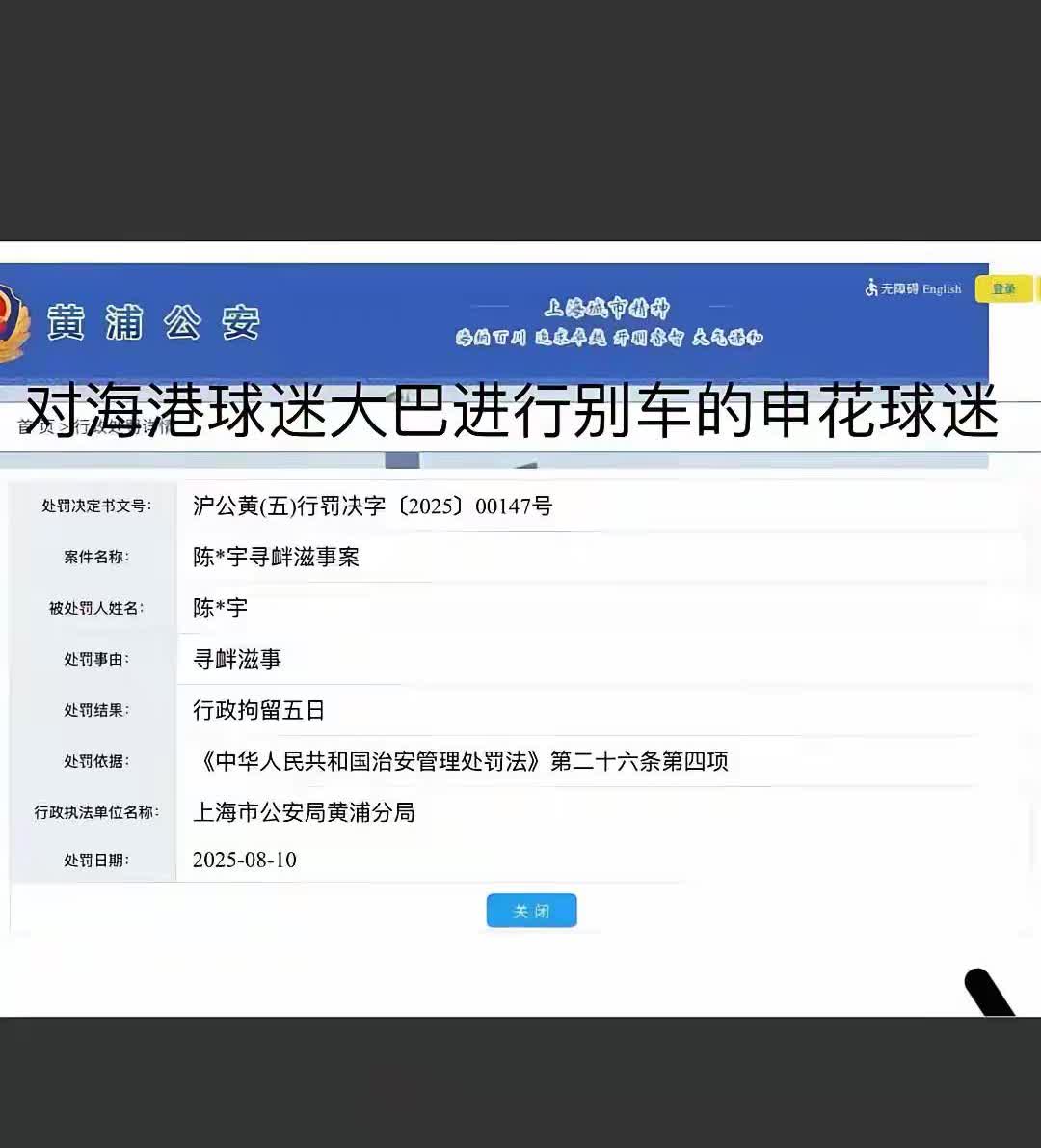 在高架桥上别海港球迷大巴车的极端申花球迷,处理结果🚪出来了,这回真的是自吃苦果了!🍏 如此极端甚至已经危害到他人的行为完全不能接受,也希望球迷协会和俱乐部一起加强培训疏导,让这些极端球迷能冷静下来,真正可以做到底蕴传承吧!