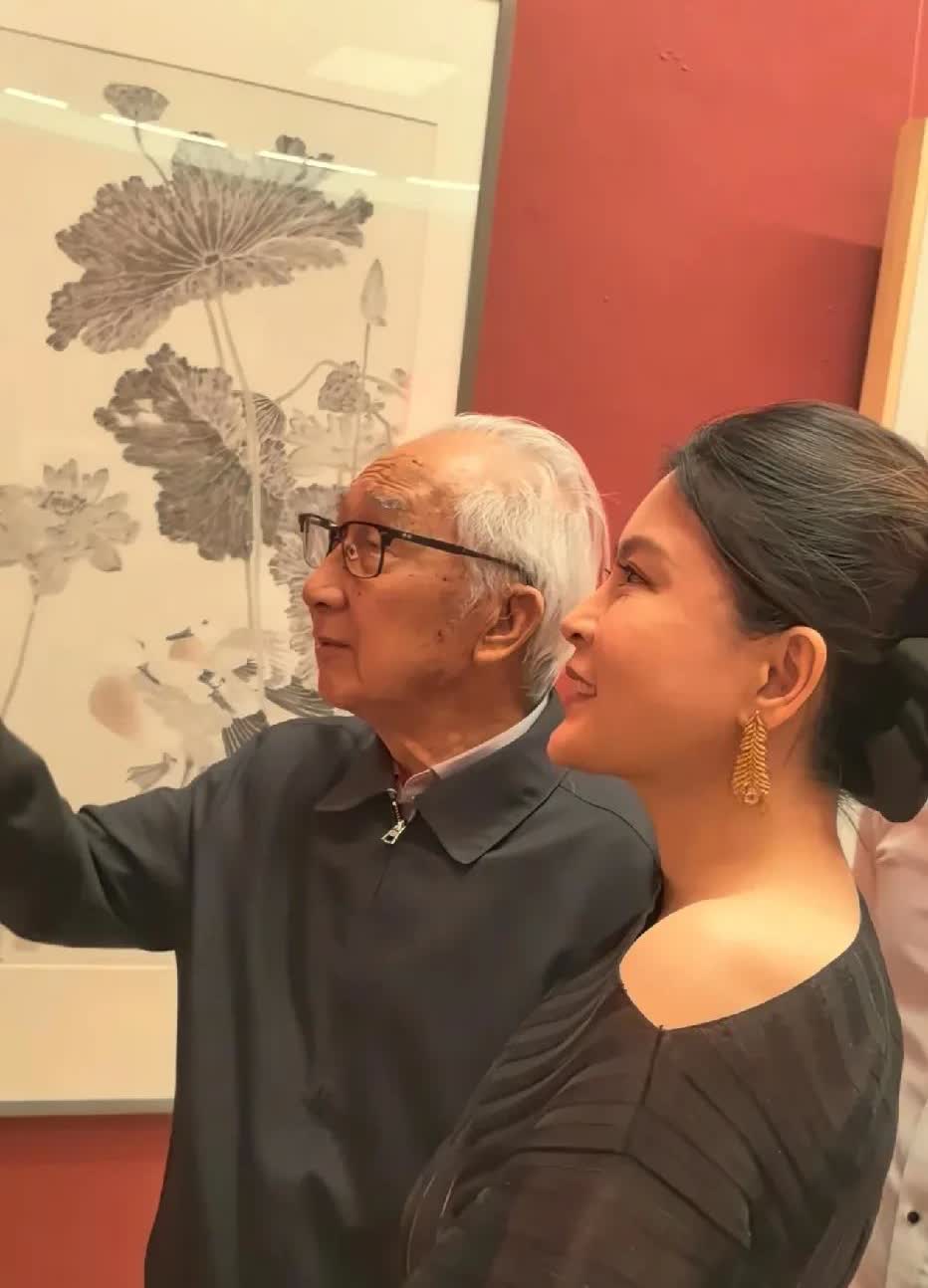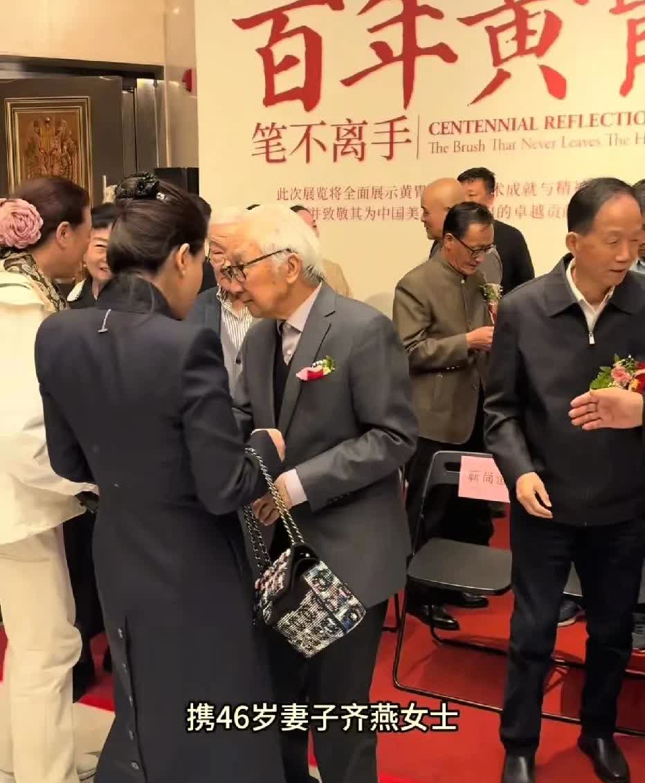 92岁原中央美院院长靳尚谊老先生带着46岁娇妻祁艳参加活动,靳老真是老当益壮啊!