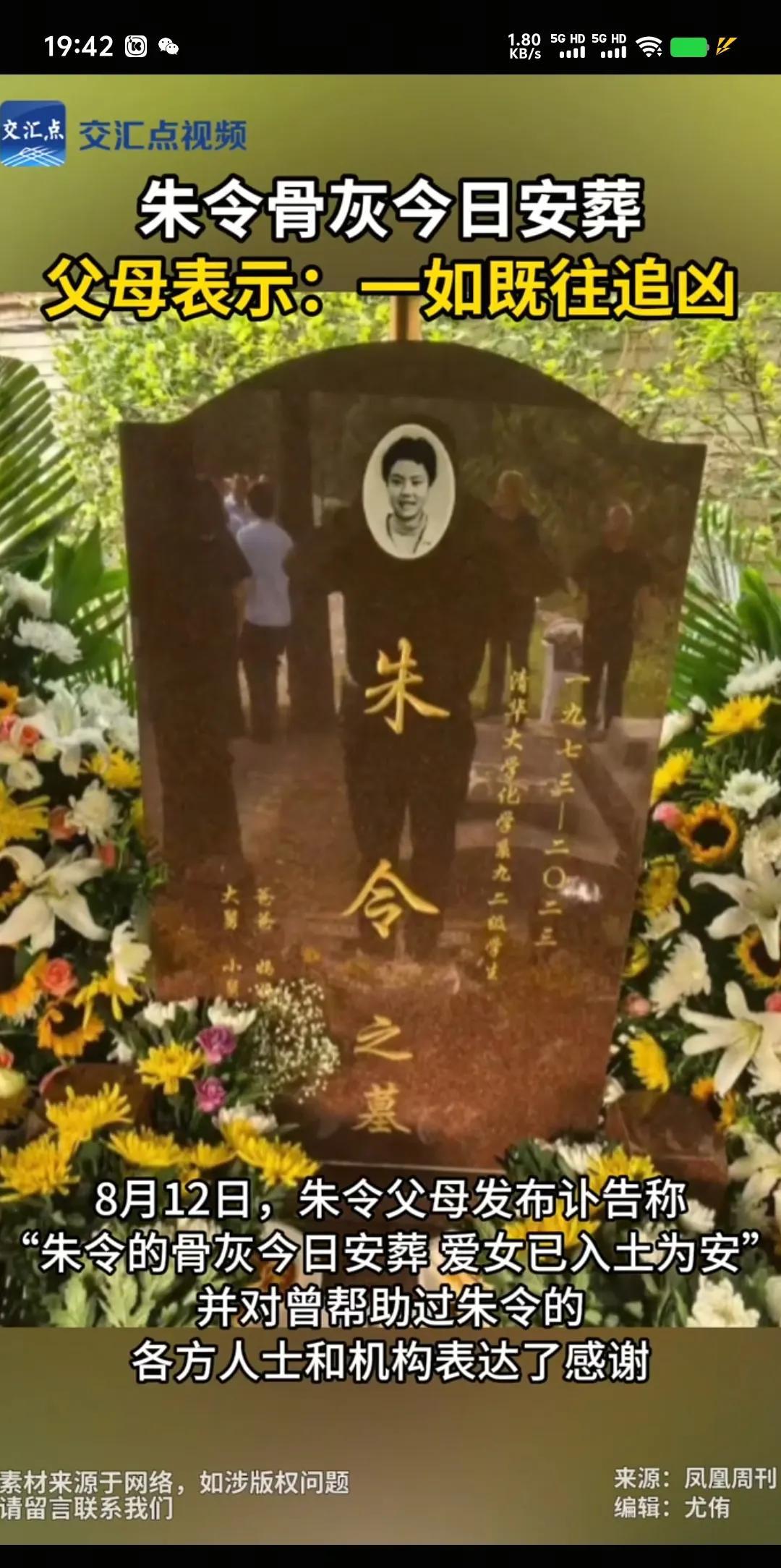 清华“”铊中毒案”朱令骨灰今日安葬在万安公墓,虽然沉冤未洗,但最起码算是入土为安