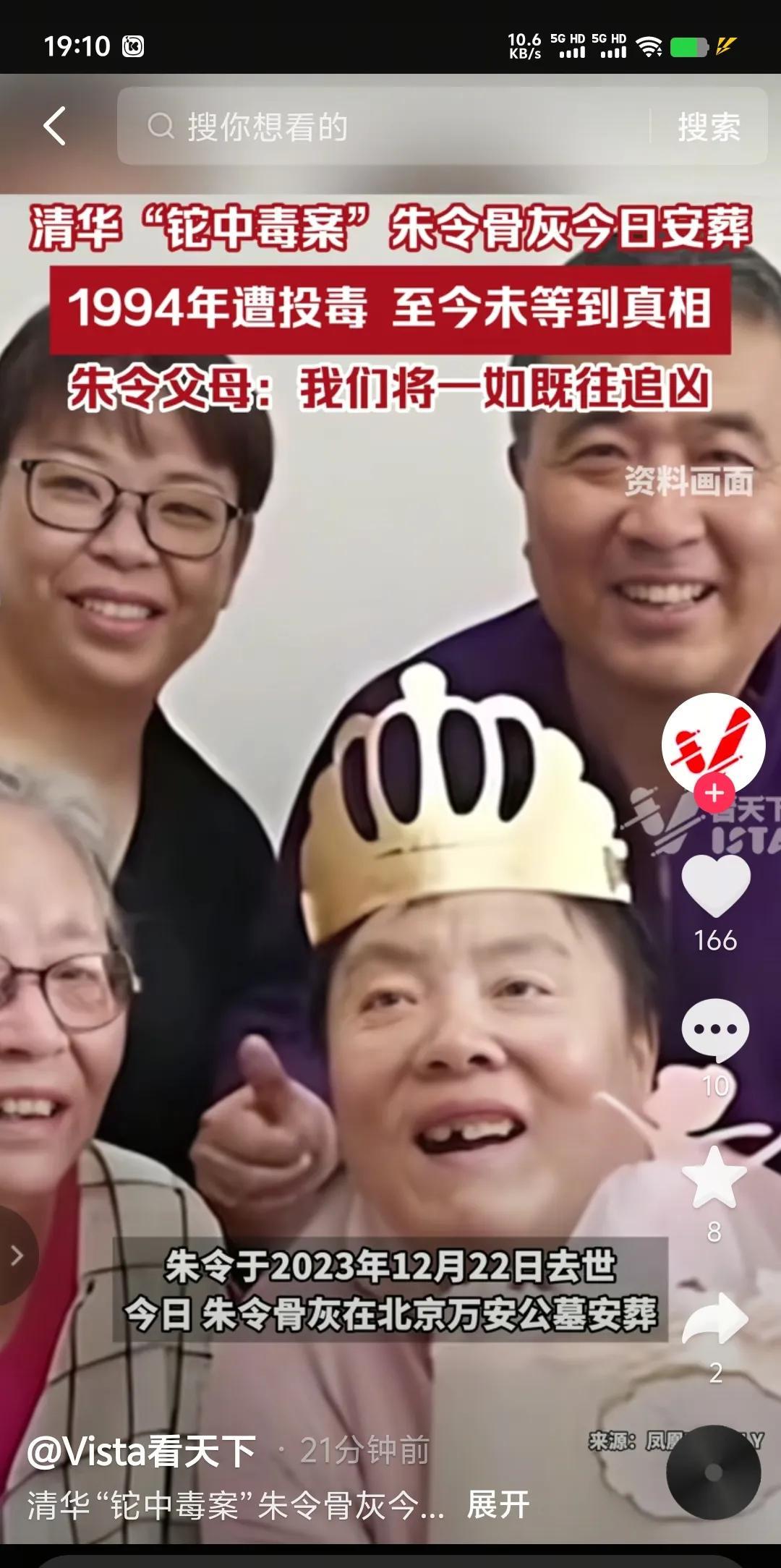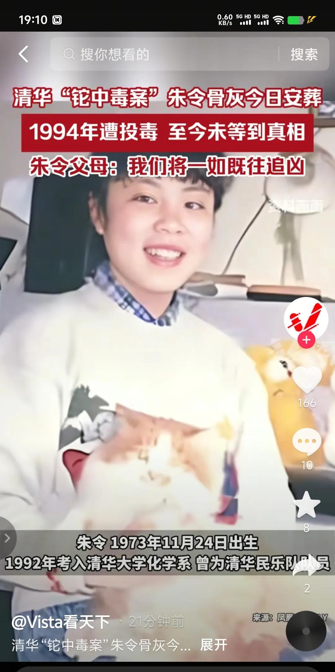 清华“”铊中毒案”朱令骨灰今日安葬在万安公墓,虽然沉冤未洗,但最起码算是入土为安了。受场地等诸多因素所限,仅邀请20多位亲朋参加葬礼。父母发文公告:爱女虽已安葬,但沉冤须昭雪,“我们将一如既往追凶,无论天涯海角”。 21岁遭投毒,22岁确诊为砣中毒,50岁(2023)离世,28年期间饱受病痛折磨,生不如死。一个清华才子竟然落的如此下场,除了让人感到惋惜心痛外,更多的是对凶手的逍遥法外感到无比的愤慨。 高级知识分子家庭培养出两个优秀的女儿,姐姐北大,妹妹清华。然而上天好像故意捉弄人,1989年19岁的姐姐意外坠崖身亡,1994年21岁的朱令遭她人下霉。如今两位80多岁的老人相依为命,泪水不知哭干了多少次,此生最大的愿望就是为爱女朱令沉冤昭雪。 正义也许会迟到,但绝不会缺席,希望这句名言不要被打破。