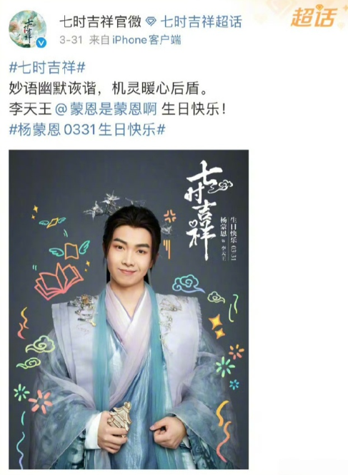 我要炸了 看到杨蒙恩说自己客串了一个仙侠剧 那个剧一点也不火 那个剧叫七时吉祥