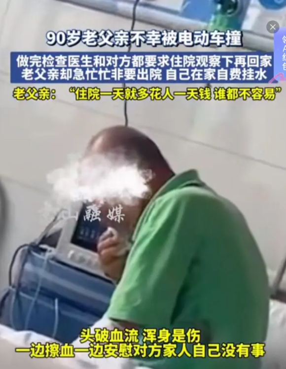 这时老爷子发话了:我没事,我不住院,回家自费打吊瓶。住院一条就多花别人一条钱,谁挣钱都不容易。