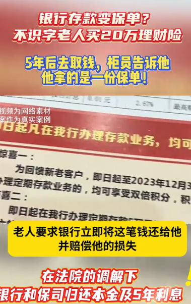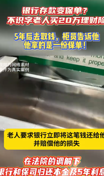 老人当场质问:“我不识字,我是来存钱的,怎么就成了保险?”