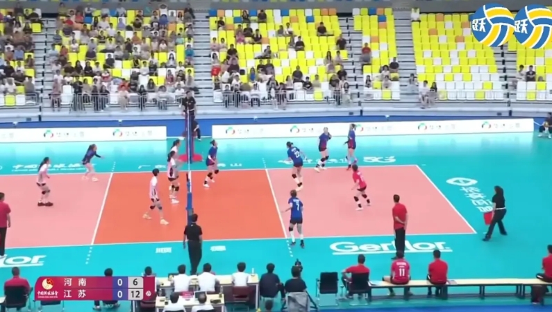 今天与河南女排的第一局,尽管江苏女排几大主力不在,但是比赛过程一直处于上风,完全抑制住了河南女排,比赛呈一边倒的态势。