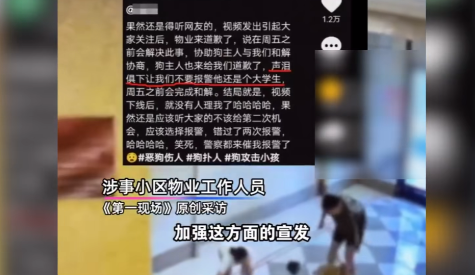 事情发生后,女子表示她发布了视频,很快物业和狗主人就联系了她,表示会协商解决,狗主人还声泪俱下的求她别报警,自己还是个大学生。