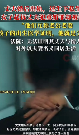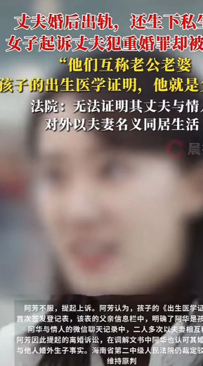 丈夫婚后出轨,还生下私生女,妻子起诉丈夫犯重婚罪,却被法院驳回!妻子:“他们互称老公老婆,孩子的出生医学证明,他就是父亲,怎么就不构成重婚罪?”法院:证据不足!网友:孩子都生出来了还不能证明,那哪样才算?