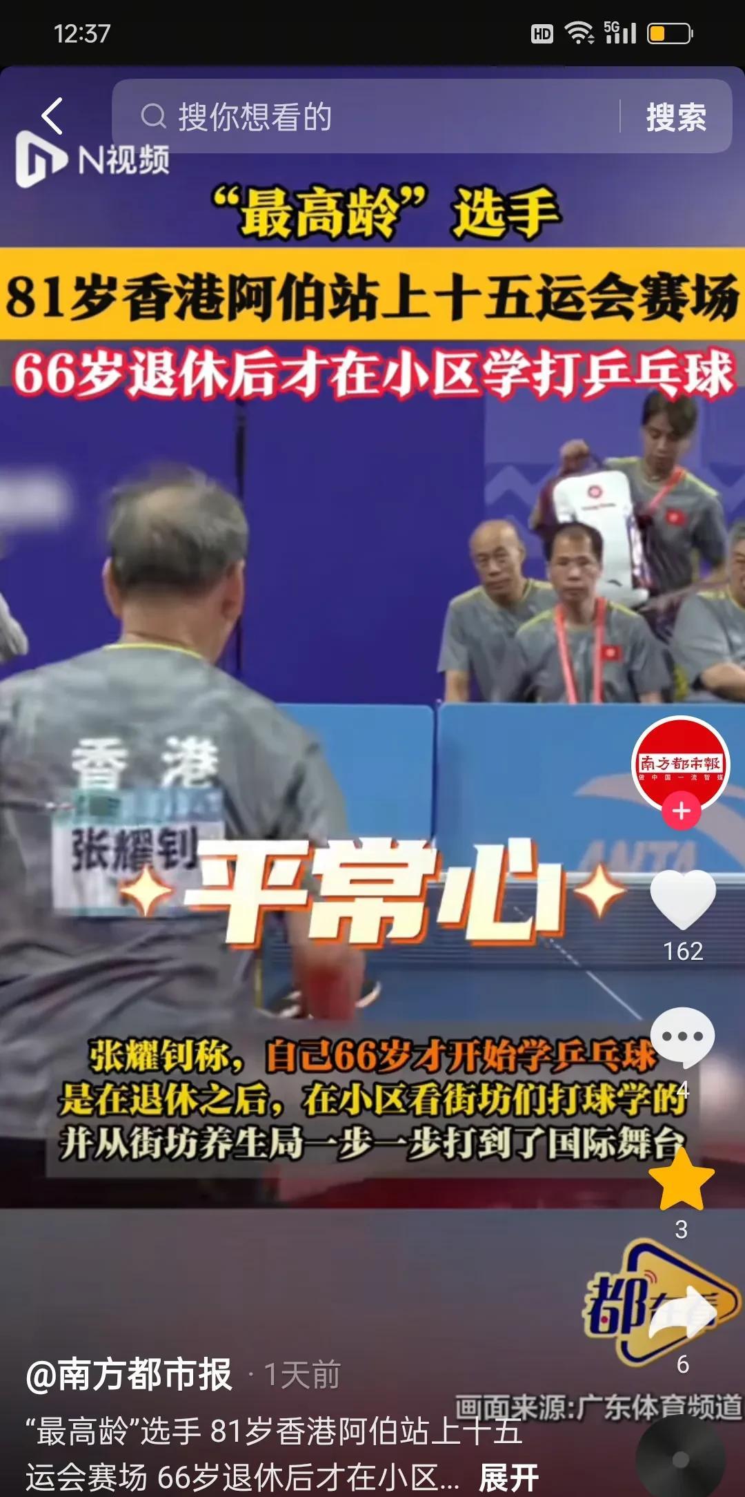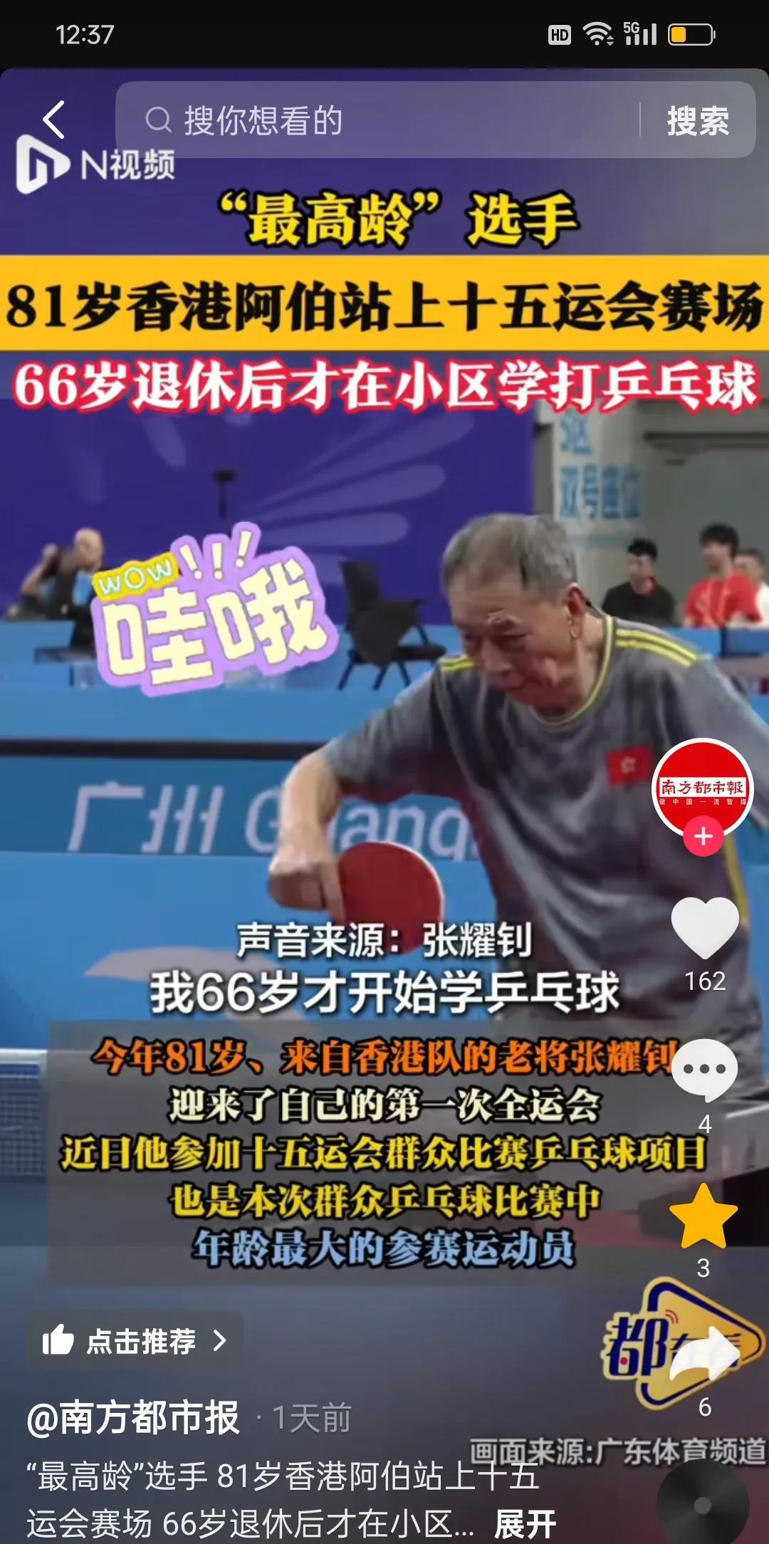 全运会最高龄81岁香港选手将参加乒乓球比赛! 生机勃勃的老年人,向这位老人致敬!