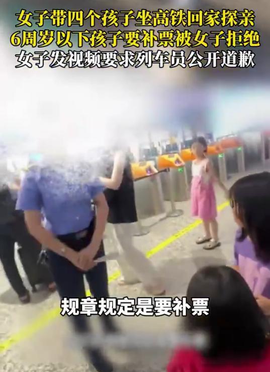 不是谁的声音大谁有理!福建龙岩,一位单亲妈妈在网上吐槽,一个人带4个孩子坐高铁回家探亲,上车后她主动提出愿意补一张票,可乘务员却要求补3张票。女子一听,当场发飙,认为自己被欺负了,而且规定也不合理,但网友却没有站在她这一边 视频中,这位单亲妈妈的情绪非常激动,她介绍到,自己带着4个孩子好不容易回趟娘家,其中两名6周岁以上,两名6周岁以下,上车后,因为孩子没有买票被工作人员拦下 女子是愿意给6周岁以上孩子补票的,但铁路工作人员依据“1个成年人只能携带1名6周岁以下儿童”的规定,要求她为其余3位孩子补票 女子认为这个规定太过冰冷,拒绝补票并与工作人员发生冲突。事情结束后,她发视频,向相关部门要说法 对此,有网友表示:确实有规定。“每一名持票成年人旅客可免费携带一名未满6周岁且不单独占用席位的儿童乘车,超过一名时,超过人数应购买儿童优惠票。”至于是不是单亲妈妈,跟人家火车和列车员没有关系吧? 还有网友说:如果按照你这想法,那以后夏令营就可以带一堆小孩去旅游了 这事其实挺有代表性。铁路的免费政策,本质是给家长一个便利,但它有个“1带1”的前提,既考虑到了乘客的舒适度,也保证了安全和秩序。带四个孩子,超出免费的额度,就得按规则来,不然真会有人钻空子 从她的角度看,可能是觉得自己没恶意,孩子又不大,反正都能挤着坐。但在执行层面,列车员没法按情分来判断谁该通融、谁不该,一旦破例,就没法对其他乘客解释。对乘务员来说,他们面对的是制度,不是个人情况 公共规则就是公共规则,不能因为个人困难就要求破例。与其抱怨规定不合理,不如提前了解规则做好准备