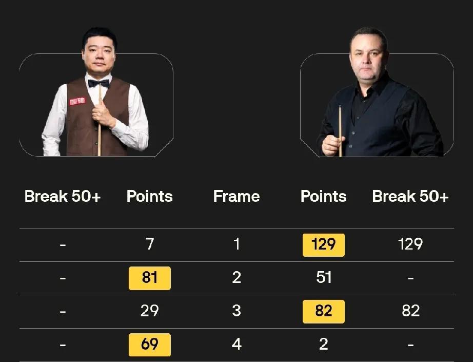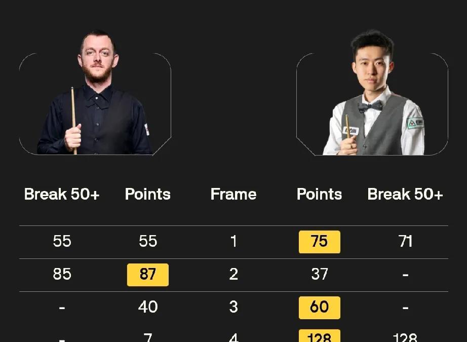赵心童、常冰玉大比分领先! 北京时间8月13日凌晨,斯诺克沙特大师赛下半区8场第五轮比赛开杆。在已经结束的上半区的比赛中,张安达、袁思俊、龙泽煌分别不敌斯图尔特·宾汉姆、马克·威廉姆斯和马克·塞尔比,无缘16强。 赵心童打出单杆92分、132分、97分、94分,4-0领先斯蒂芬·霍尔沃斯。 常冰玉发挥出色,打出单杆71分和128分,3-1领先马克·艾伦。 丁俊晖2-斯蒂芬·马奎尔、吴宜泽2-1斯佳辉。