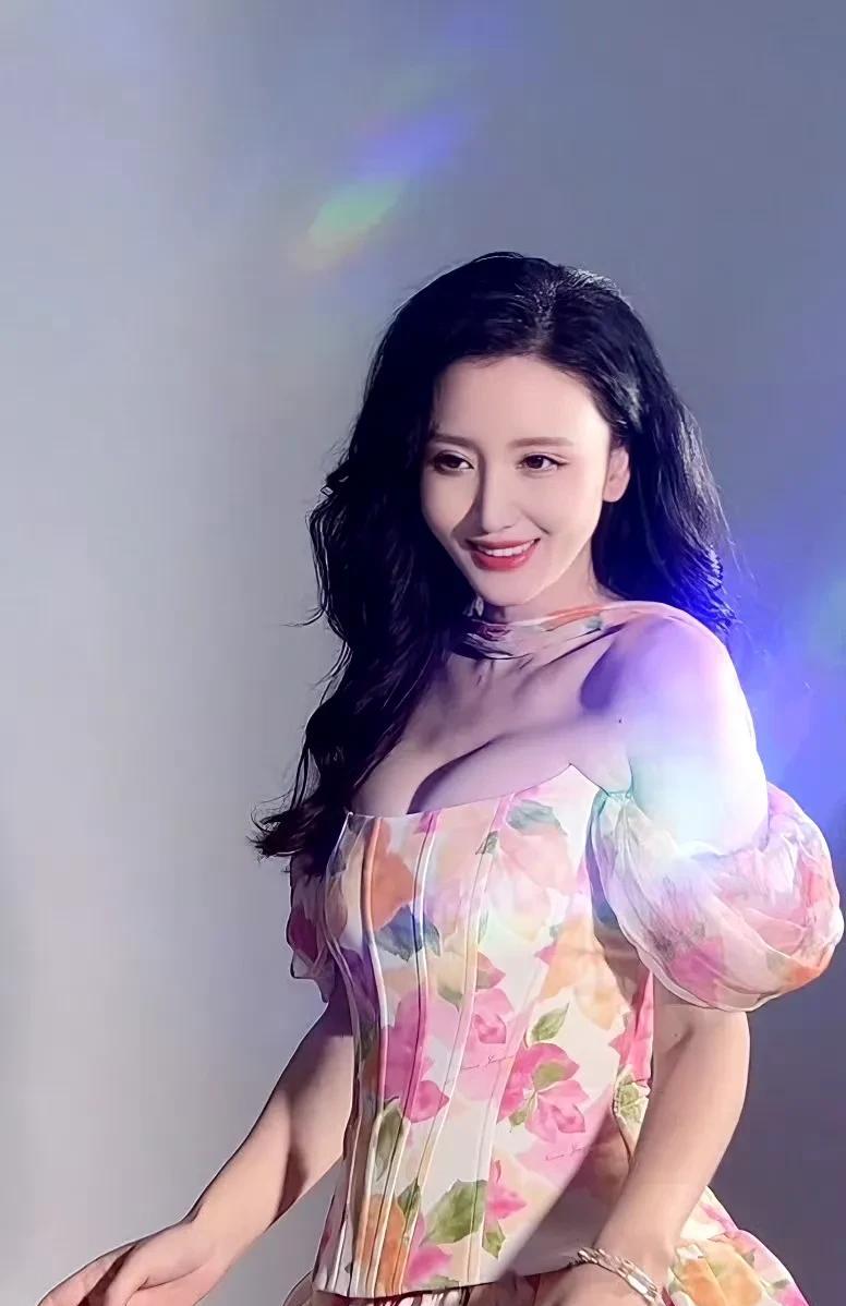 张萌一亮相,世界都失色!吹弹可破的肌肤,勾魂摄魄的笑,搭配花色蓬裙,傲人曲线藏