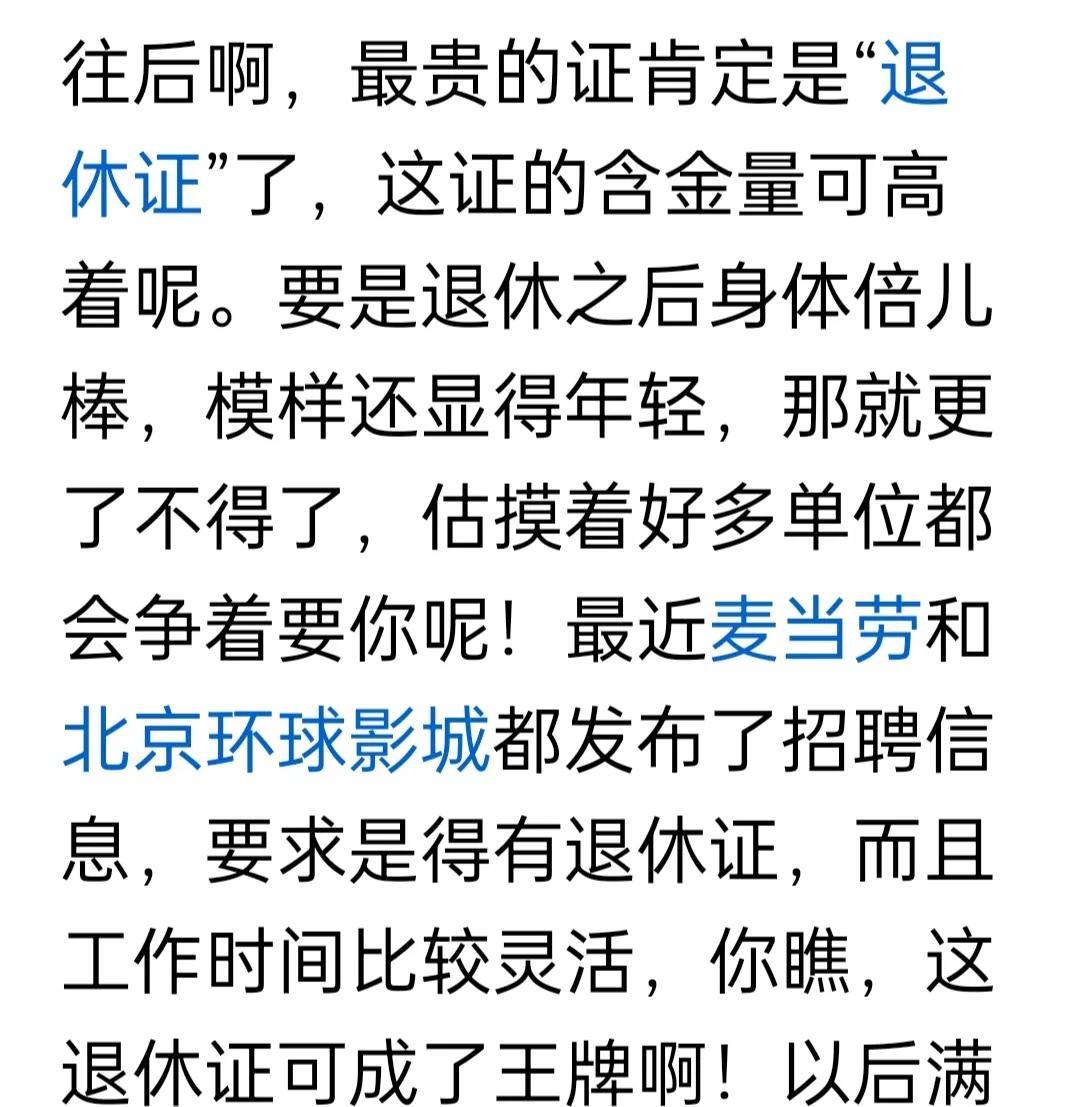 最近网络又出现一种奇谈怪论,说是从9月1日起,有退休证的人又要吃香了,言外之意就