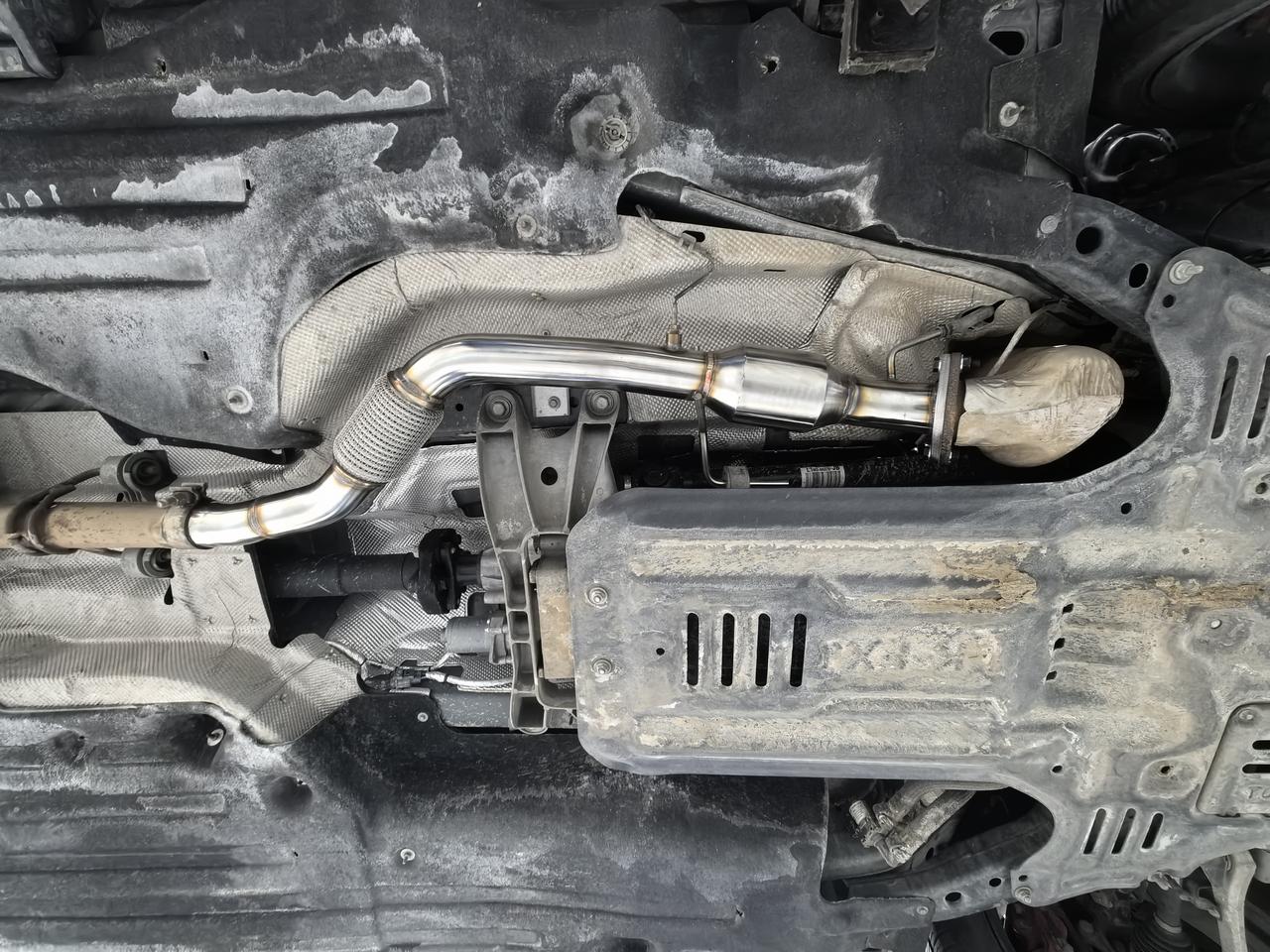 1. 中冷硬管改装(某宝价格243元) 原厂橡胶软管在涡轮起压时易膨胀,导致动力响应迟滞。 更换为硅胶复合材质硬管后,起步动力衔接更直接,并且急加速动力响应也更快。 安装需注意卡扣密封性,建议搭配耐高温密封胶使用。 2. 高流量中段排气(某宝价格993元) 原厂国六B探险者搭载的颗粒捕捉器(GPF)堪称「性能封印器」。其蜂窝结构使排气并不顺畅,尤其在中高转速区间,就像给发动机戴了口罩跑步。 于是我选择了这款镜面抛光304不锈钢材质,通过气流反射效应更好的高流量中段,加速废气排出。 拆除原厂带颗粒捕捉器的中段,只需拆解几个卡扣,螺丝就可以轻松搞定。 拆解以后两者放在一起对比,单从外观就可看出孰好孰坏好(一个是铁的,一个是铝的)。 并且安装起来也非常的顺利,都是无损对接,各种接口跟原车的规格和型号都是完美匹配的,也不会亮故障灯。 再配合ECU自适应学习后,转速攀升速度提升非常明显!声浪维持原厂低调风格,最重要的是它还不影响检车! 三、综合体验 改装后综合油耗减少0.6L/100km(现14.5L),并且还换来了三大提升: ① 副驾舒适度评分从7.5升至10.0(媳妇10分制) ② 40-80km/h中段加速更跟脚 ③ 起步换挡更加顺畅 (改装耗材花费1200+243+993=2436元,人工费500元,总花费不到3000元)