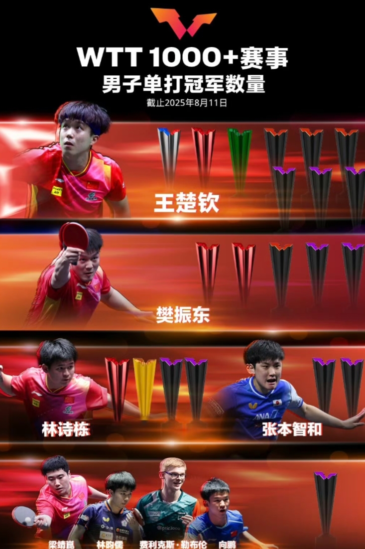 张本智和看起来是真不晕左,第一座冠军赛奖杯是决赛从林高远手里拿的,让三追四;第二座是王楚钦手里拿的,开场就是3:0,但王楚钦没法子对他让三追四,所以4:2大结局,是乒坛第一个手握两座冠军赛奖杯的外协。