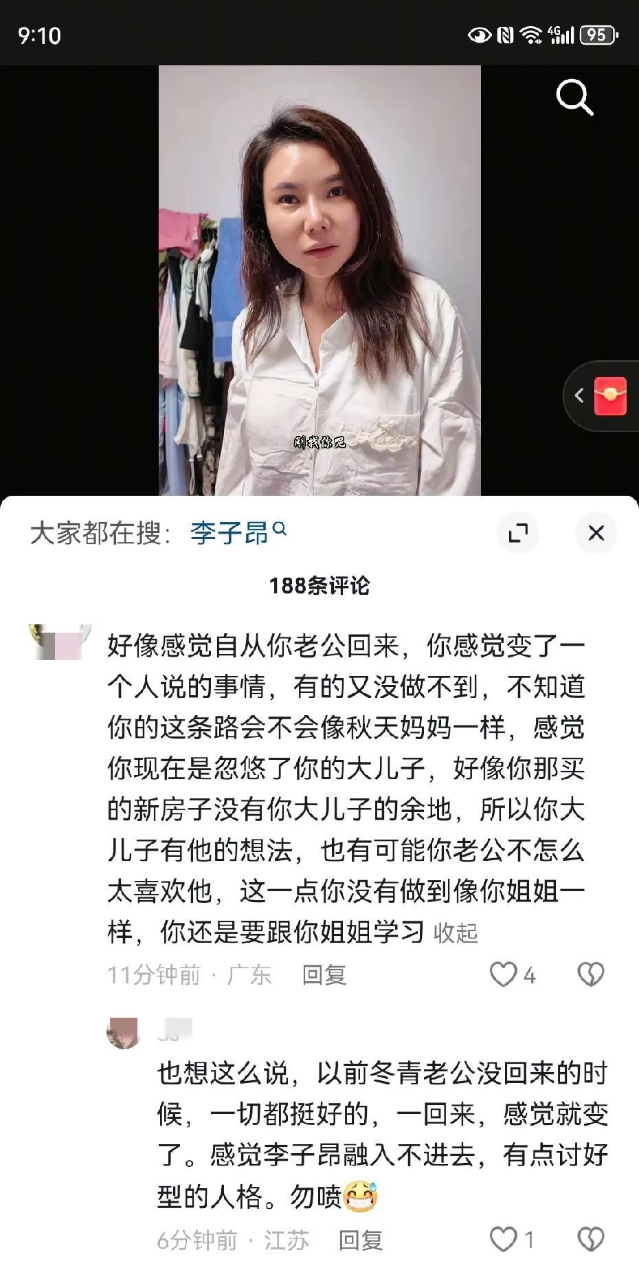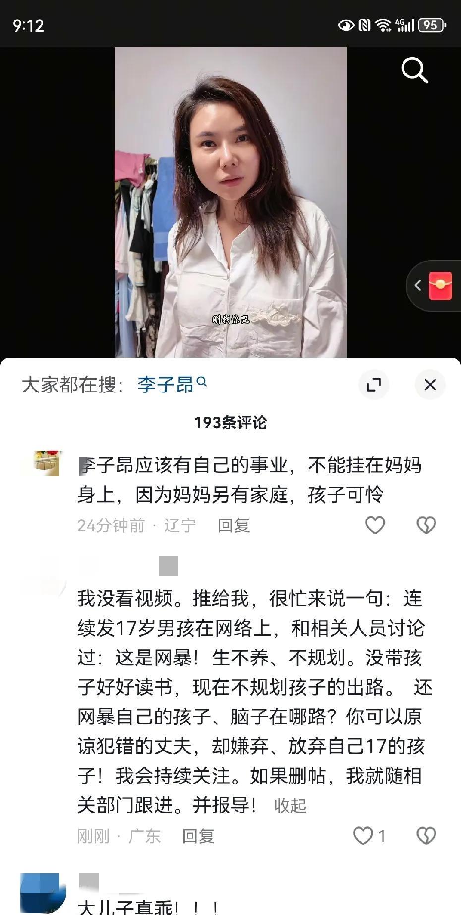 二姐跟大儿子娘俩打仗,瑞哥和奥子躺枪。 奶总儿子奥子一直都不被网友看好,今天二姨给他们训话,奥子抖个不停,被网友吐槽得不要不要的。让李子昂和王一涵都不要跟他玩儿,会带坏的。不知奶总看到网友这么讨厌这么不待见她生的儿子是啥想法! 瑞哥才出来两三个月,虽然二姐一直在给他立勤快有文化的人设,但反感讨厌他的网友却是越来越多。这几天二姐跟大儿子冷战,互相不理睬。很多网友觉得主要原因在瑞哥这里,说他心眼小没格局,对继子不够包容不够好,他们家里人都容不下这个娃。自从出狱,两口子就无视大儿子的心里感受,各种秀恩爱,撒狗粮,天天东摸西摸的。一大家人马上要去苏州,二姐安排他去苏州送外卖,这娃可能也不想去干那个工作,如果还是让他继续拍视频,他应该会同意跟着去的。 翻看评论区,都觉得孩子们变成现在这样,跟她们当初自私自利,随意离婚有很大关系。大人分开都能活得很好,但苦了孩子,让他们承担了后果,指责大人的会更多。