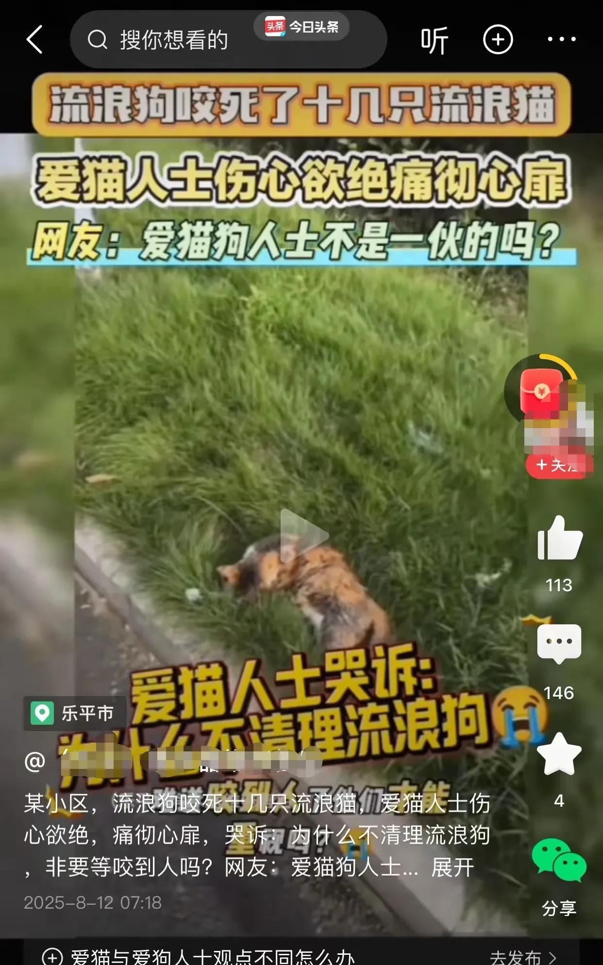 爱心人士哭诉,为什么不清理流浪狗。 爱猫爱狗不是一伙的吗?怎么还起内讧了,搞分裂了?猫吃鸟你们说是生物链,正常行为,人类不能干预自然生态,那狗咬猫都必须干涉了?妥妥的双标啊。 如果再出来一个爱鸟人士哭诉为什么不清理流浪猫,你们该如何应对?