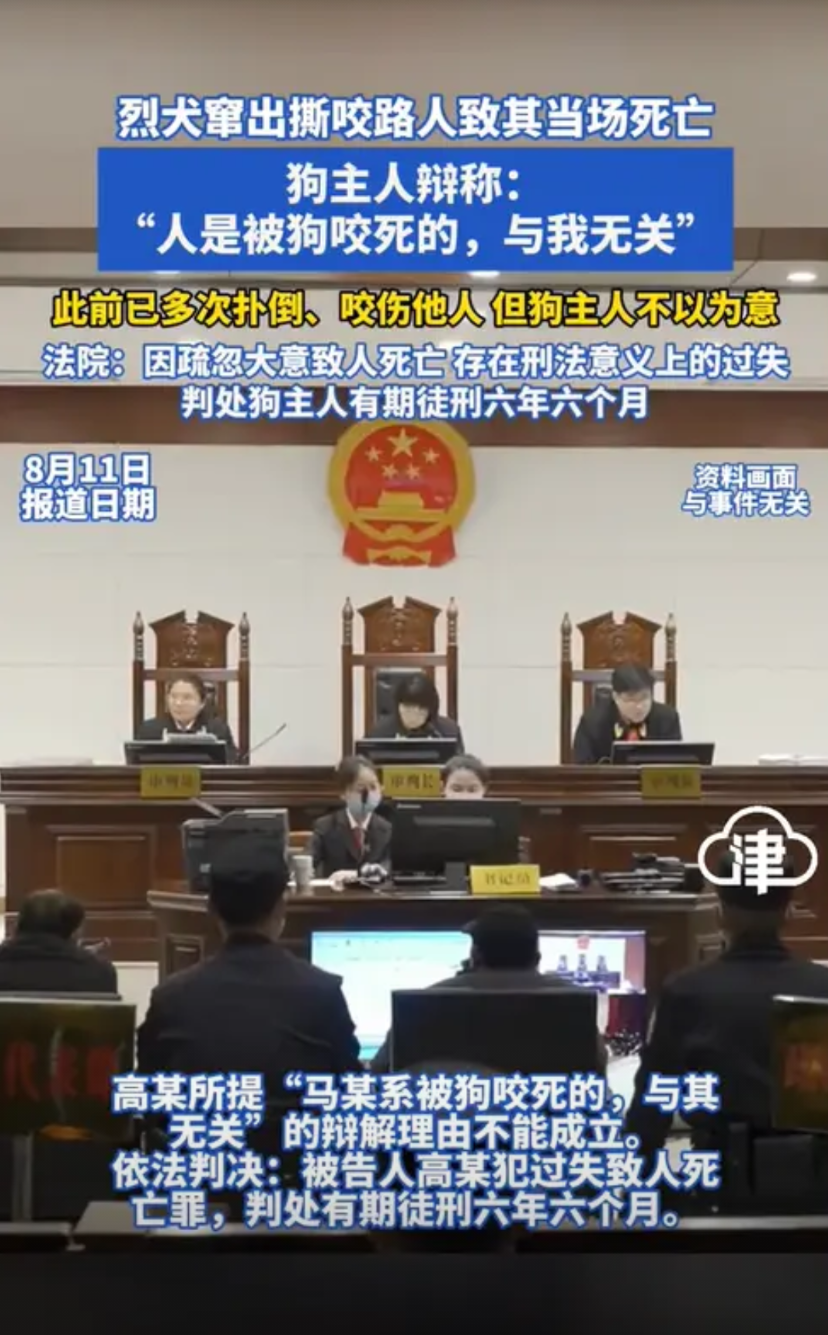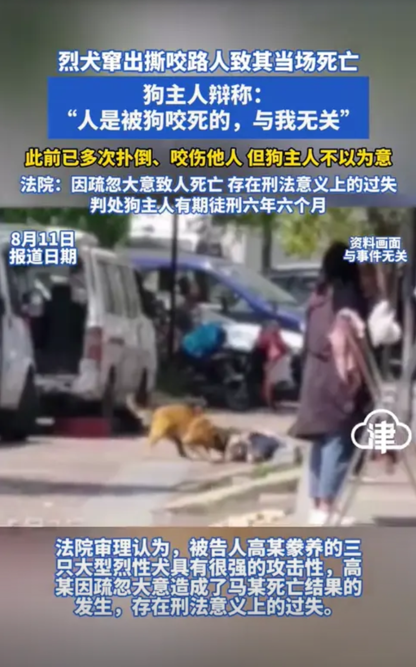明知烈犬要咬人,却没有管理好。过失杀人逃不掉的